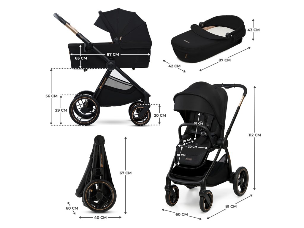 - Multifunkčný kočík: veľká vanička, pohodlný kočík, možnosť cestovania v dvoch smeroch.