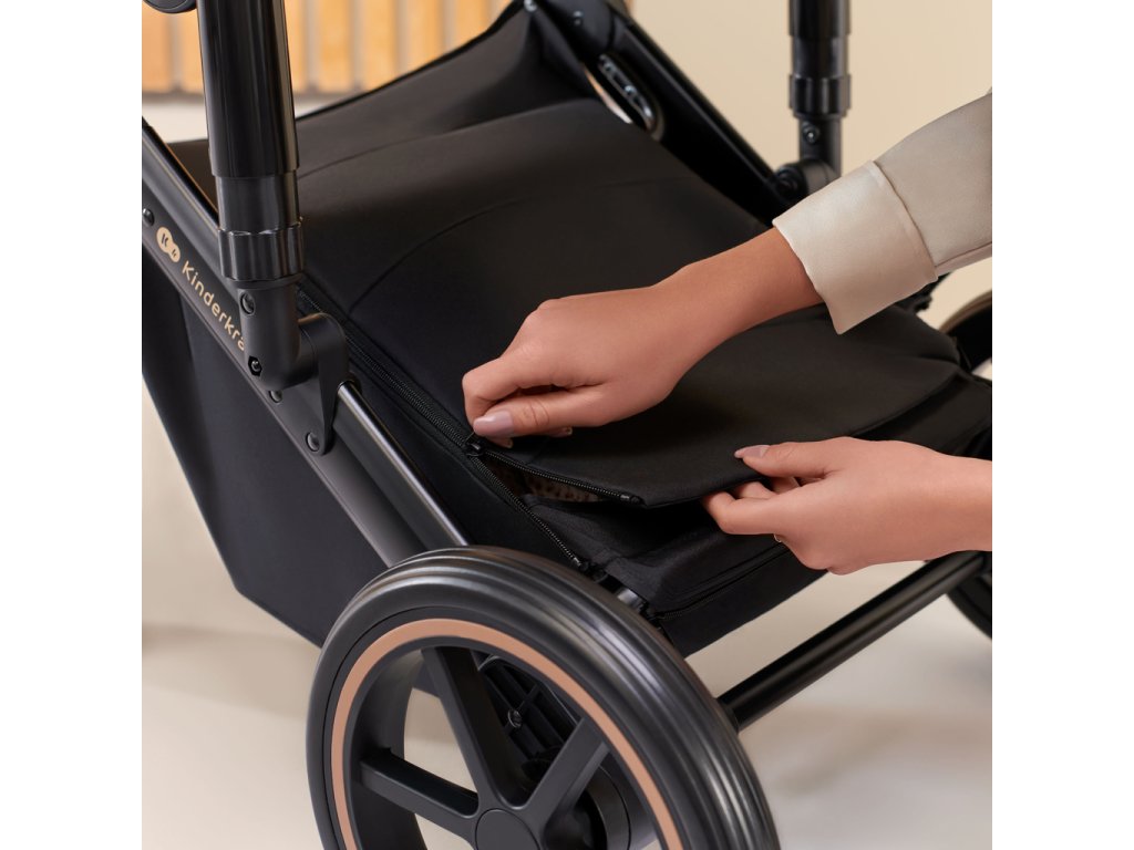 Kočík sa dodáva s praktickým príslušenstvom: elegantná taška s cestovnou prebaľovacou podložkou, pláštenka proti dažďu, sieťka proti hmyzu, detská autosedačka s adaptérmi, matrac do vaničky, nánožník (pre športový kočík aj pre vaničku).