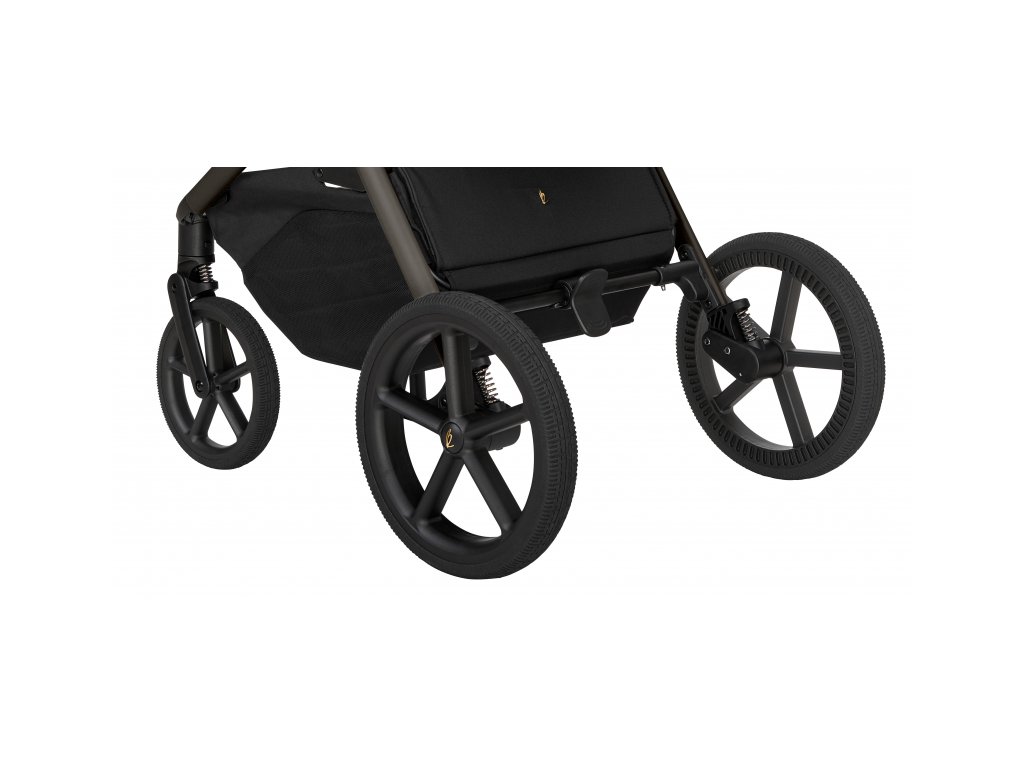 Pri jazde oceníte možnosť výškového nastavenia rukoväte do 5 pozícií. Pohodlnú jazdu a ľahké manévrovanie zaisťujú veľké kolesá, predné kolesá sú otočné o 360 ° s možnosťou aretácie. Nechýba pružinové odpruženie zadných aj predných kolies a spoľahlivá "one touch" brzda.