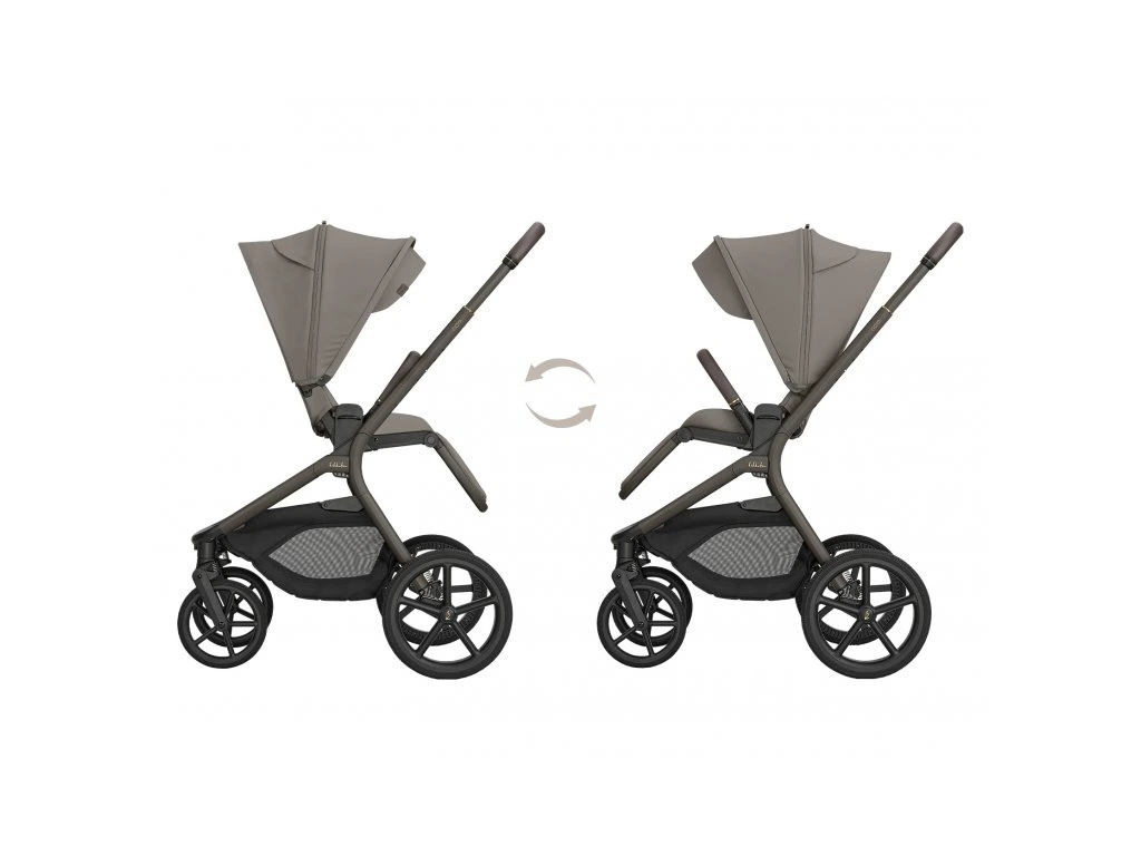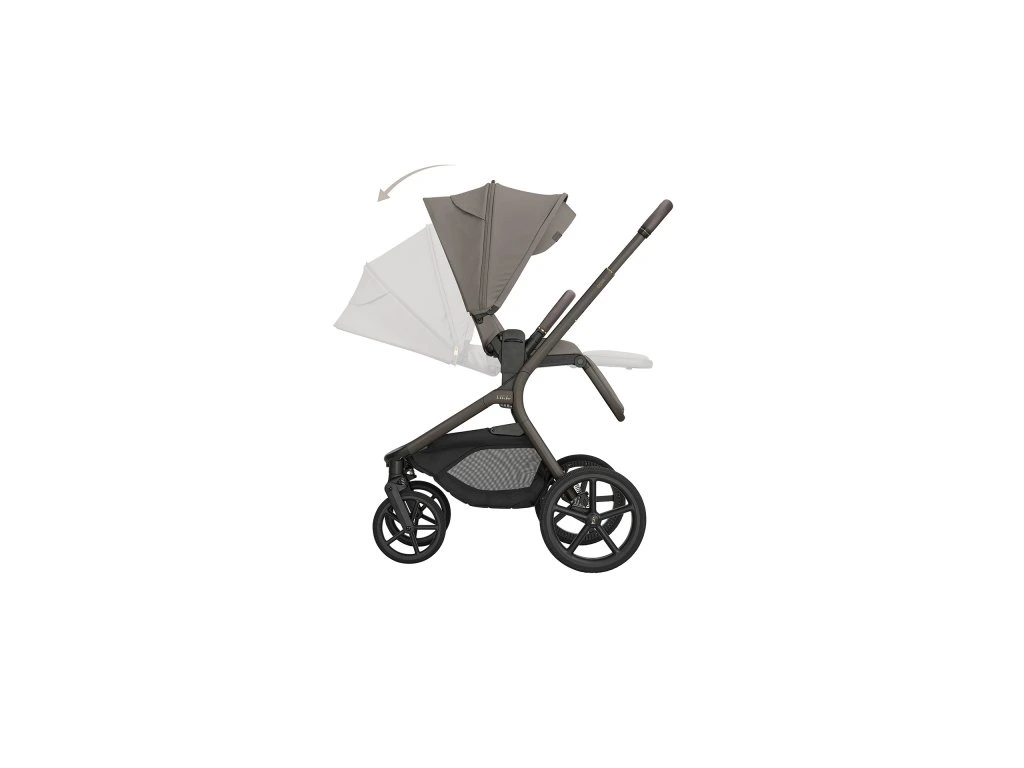 Športové sedenie je možné nasadiť po aj proti smeru jazdy a vďaka tlačidlám s pamäťou ho uvoľníte z podvozku pohodlne jednou rukou. Výšku sedenia môžete nastaviť do dvoch polôh pre prispôsobenie kočíka podľa výšky rodiča. Odnímateľné madlo pred dieťaťom je otočné o 360 ° pre ľahkú manipuláciu s dieťaťom a potiahnuté príjemnou ekokožou.