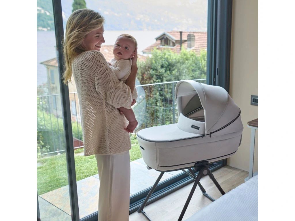 Kombinovaný kočík Aptica XT 4v1 Recline sa skladá z: priestrannej hlbokej vaničky XXL s 5-timi okienkami, matraca, Welcome PadTM, stojana Stand UpTM, autosedačky Darwin Recline R129, športové sedačky All season s búdkou, nánožníka, košíka, držiaka pohárika a nového odľahčeného adaptívneho podvozku Aptica XT.