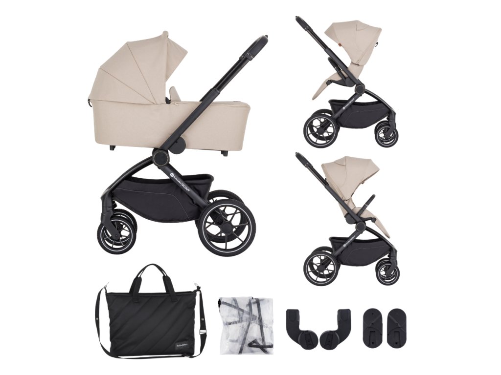 Vďaka jednoduchému skladaniu a premyslenému naklikávaciemu systému s poistkou zvládnete prechod medzi vaničkou a športovou časťou rýchlo a bezpečne. Konštrukcia je pevná, kočík sa výborne ovláda a v každodennom tempe oceníte aj jednoduchú manipuláciu. Veľké PU kolesá vpredu aj vzadu spolu s miernym odpružením zabezpečujú pohodlnú jazdu aj na nerovnejšom povrchu.