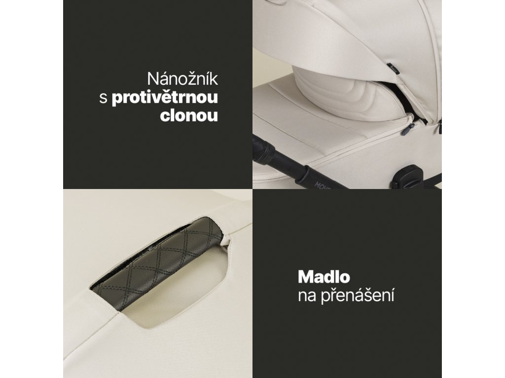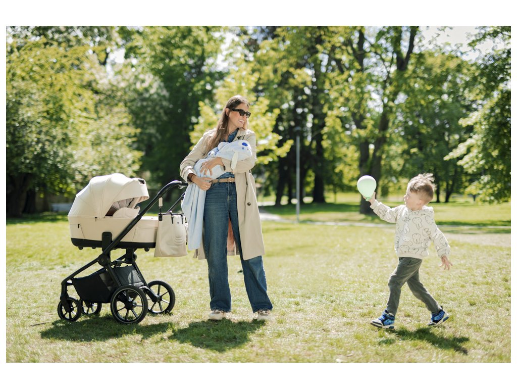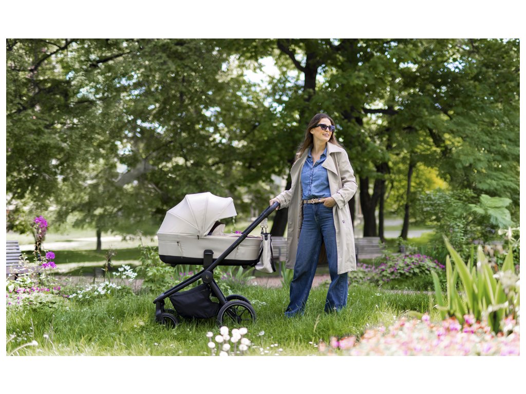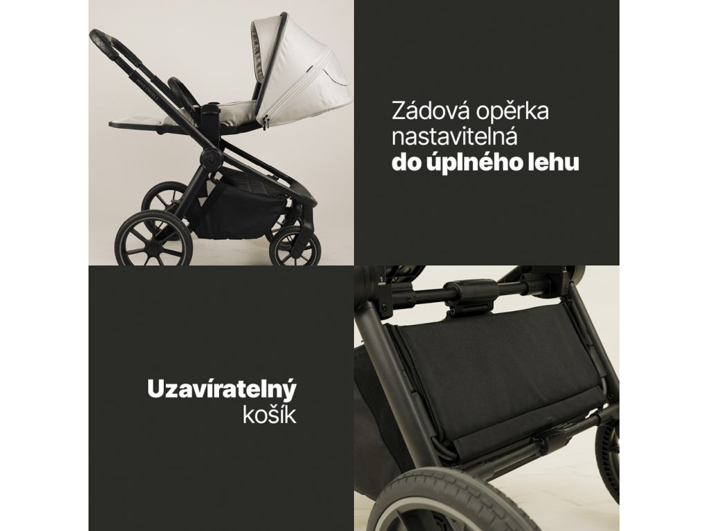 Medzi praktické detaily patrí magnetická pracka pásu, uzatvárateľný košík, odklápacia hrazda a madlo na prenášanie zloženého kočíka. Kočík sa jednoducho skladá a prenáša aj jednou rukou. V balení nechýba pláštenka, nánožník a štýlová prebaľovacia taška.