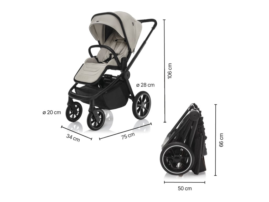 • Rozmery zloženého kočíka (š × v): 50 × 66