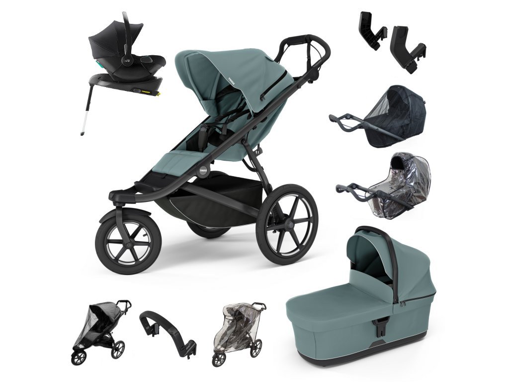 Možno používať od narodenia s korbou Thule alebo adaptérom na detskú autosedačku (predáva sa samostatne). Poťah sedadla a striešky je možné odstrániť pre vytvorenie čistého vzhľadu