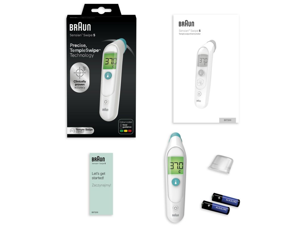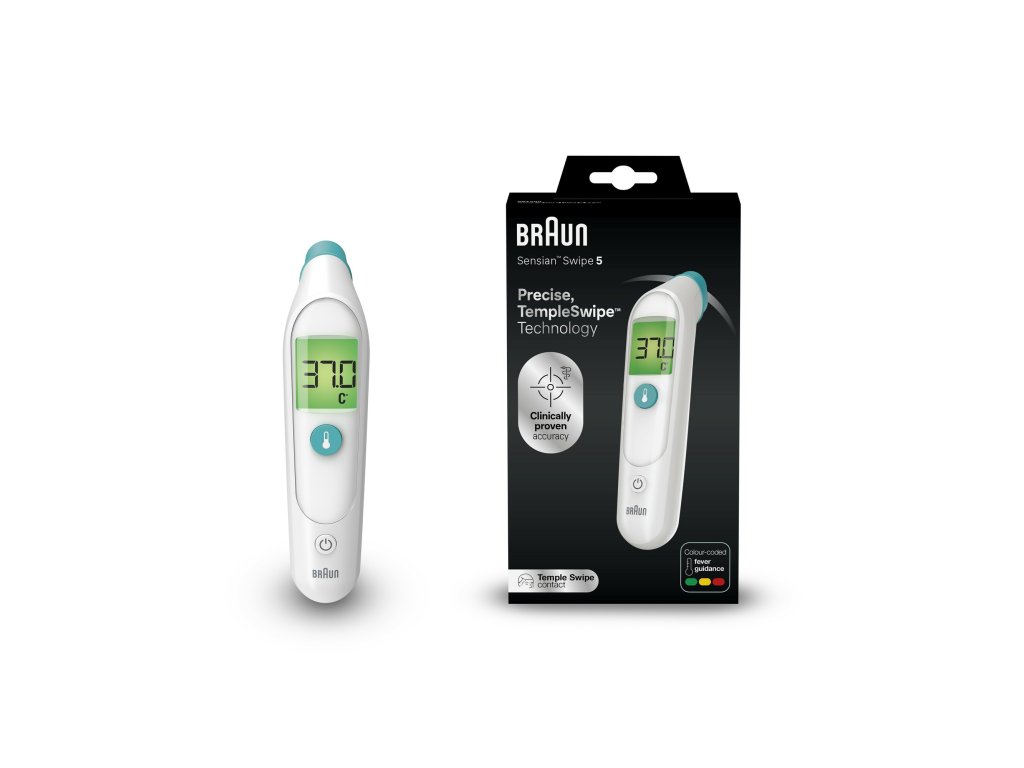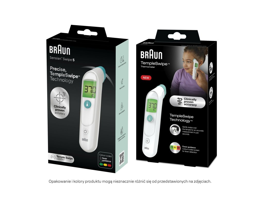 Teplomer TempleSwipe™ je univerzálne zariadenie, ktoré je vhodné pre všetkých členov rodiny, vrátane bábätiek. Ak hľadáte rýchly, jednoduchý a pohodlný spôsob merania teploty, Braun TempleSwipe™ je tou správnou voľbou. Výsledok získate už za 3 sekundy! Vďaka svojej unikátnej technológii poskytuje teplomer stabilné a spoľahlivé údaje pri každom meraní. Bol vyvinutý s využitím najnovších technológií a testovaný podľa prísnych medzinárodných noriem. Pre ochranu citlivého senzora je každý teplomer dodávaný s ochrannou meracou hlavicou, ktorú odporúčame nasadiť po každom po