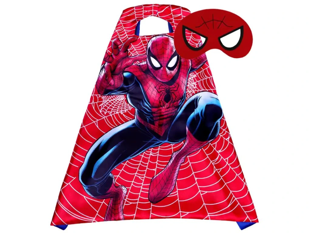 Kostým zahŕňa červený plášť s výraznou potlačou Spidermana priamo v akcii na chrbte a červenú masku, ktorá dokonale dopĺňa vzhľad obľúbeného superhrdinu. Deti si môžu ľahko predstaviť, ako lezú po stenách a bojujú proti zlu, rovnako ako ich komiksová a filmová ikona.