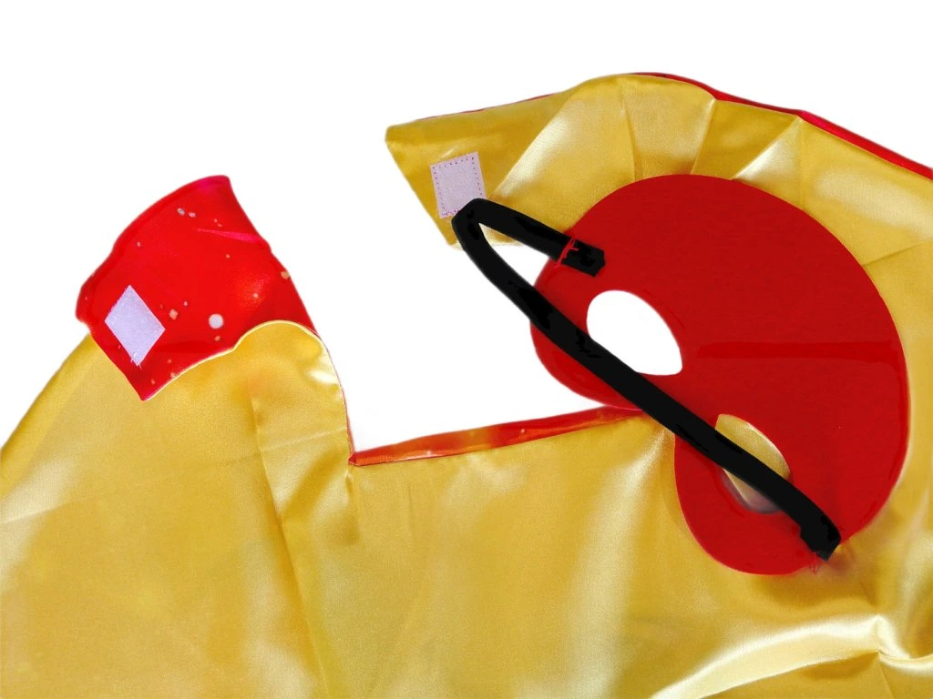 Plášť je vyrobený z ľahkého a hladkého polyesterového materiálu, ktorý je príjemný na nosenie a umožňuje jednoduchý pohyb pri hre alebo tanci. Zapínanie na suchý zips v oblasti krku zaisťuje jednoduché a bezpečné obliekanie aj pre menšie deti. Maska sa jednoducho nasadzuje pomocou pružnej gumičky, takže perfektne sadne na každú detskú hlavu.