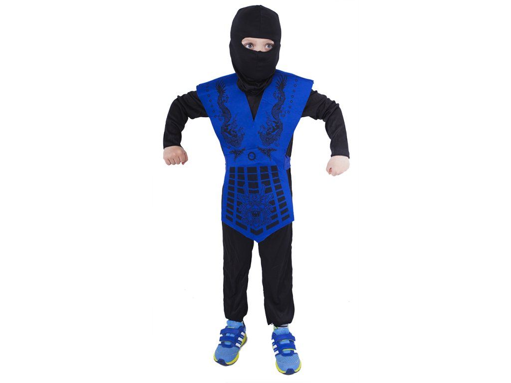 Kostým sa skladá z pohodlného čierneho overalu, na ktorý sa umiestni univerzálna modrá vesta s potlačou drakov, pre impozantný efekt bojovníka. Súčasťou kostýmu je aj čierna priedušná maska a samurajský meč, ktorý meria impozantných 60 cm a dodáva vášmu dieťaťu autentický vzhľad bojovníka. Meč je vybavený elegantnou čiernou pošvou so zlatými zdobením, ktoré pridáva dojem luxusu a exotiky.