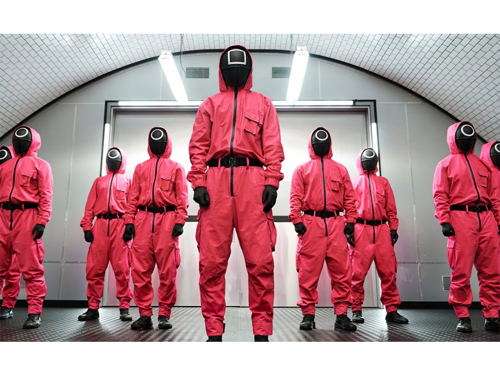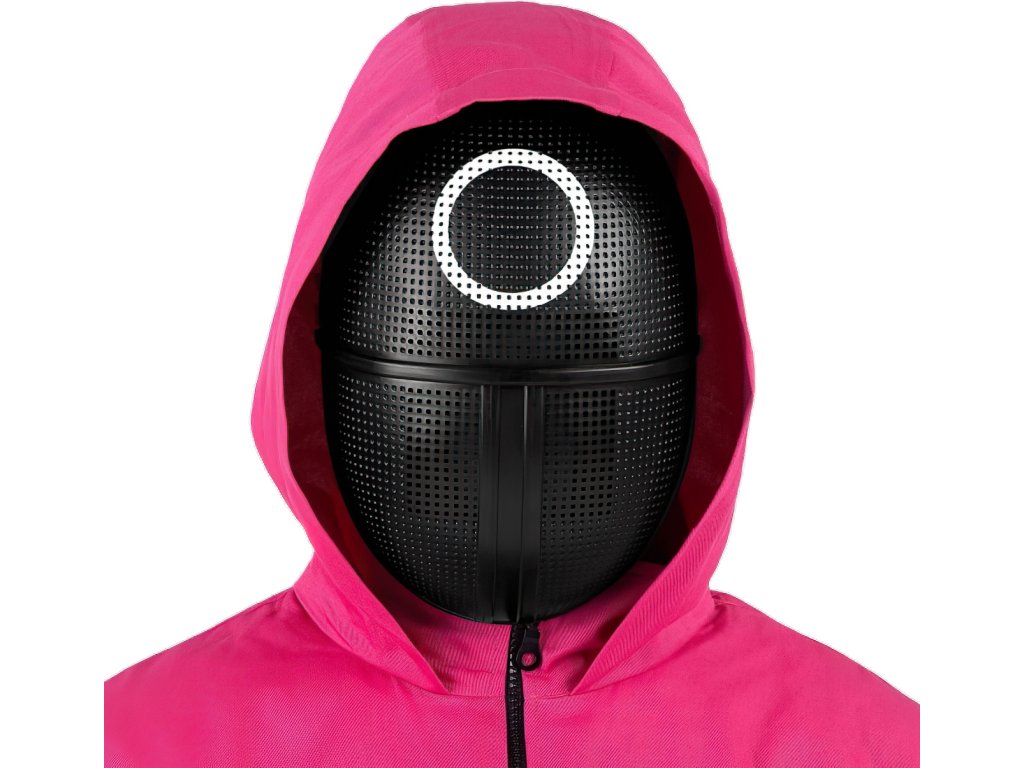 Táto maska inšpirovaná seriálom Hra na oliheň (Squid Game) verne napodobňuje vzhľad strážcov dohliadajúcich na súťažiacich.