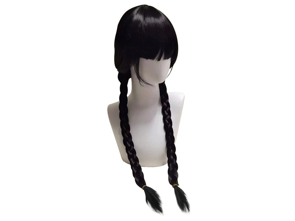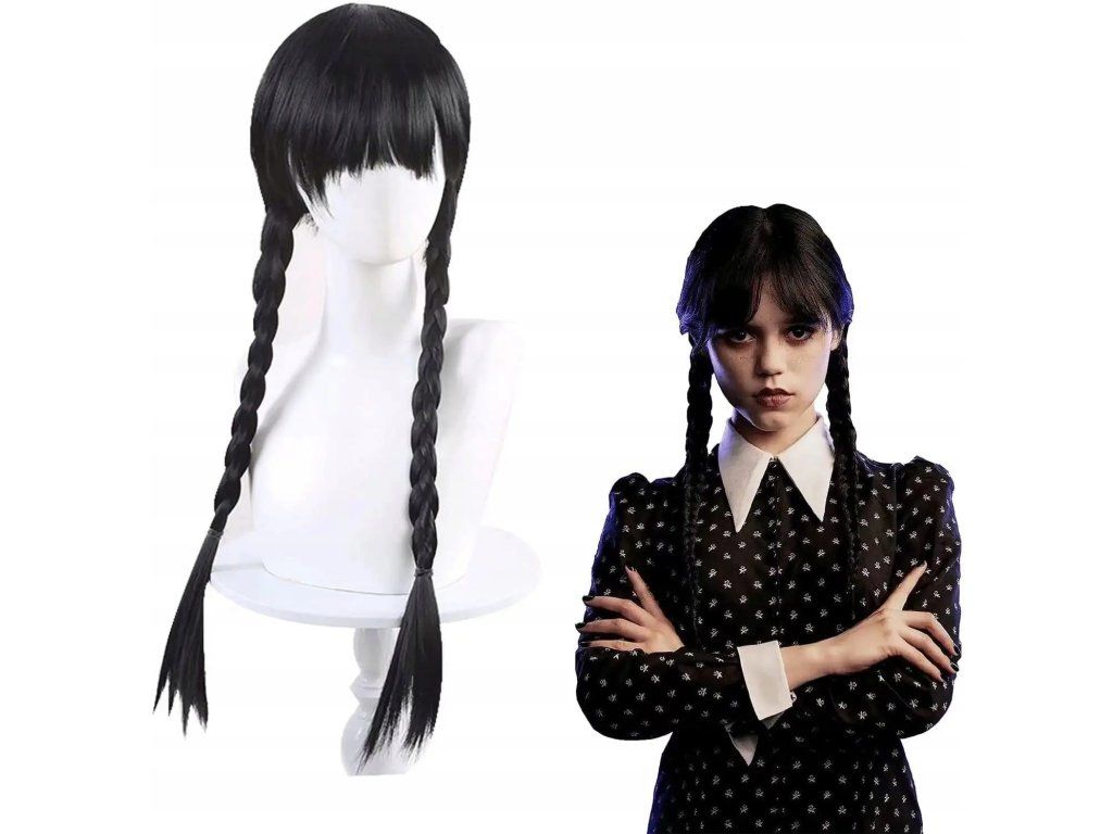 Oživte svoj kostým Wednesday s touto čiernou parochňou s ikonickými vrkôčiky. Táto parochňa je dokonalým doplnkom pre tých, ktorí chcú dotvoriť autentický vzhľad podľa postavy Wednesday z klasického príbehu Addamsovcov.
