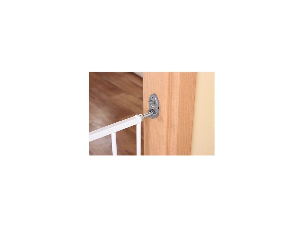 Bezpečnostná zábrana Basic je skvelý pomocník, zaisťujúci bezpečie vašich detí Zábranu k stene pripevníte skrutkovaním. pre priechody so šírkou od 68 do 106 cm, bezbariérová a vhodná tak predovšetkým pre hornú časť schodisko. Pri otvorení je zachovaná pôvodná šírka priechodu. Nastaviteľné 4bodové uchytenie poskytuje individuálne nastavenie šírky na horných aj spodných úchytných bodoch a zábranu je tak možné použiť aj na klopených stenách alebo schodiskovom zábradlí. a pre zabezpečenie jedného smeru sa dodáva aj s blokovacou súčiastkou. dvojstupňový zatvárací systém. Pre otvorenie stačí stlačiť svorku zámku a zdvihnúť zábranu. Bezpečné pre deti, jednoduché pre rodičov. Zábrana musí byť otváraná a zatváraná ručne. > Podrobnosti: