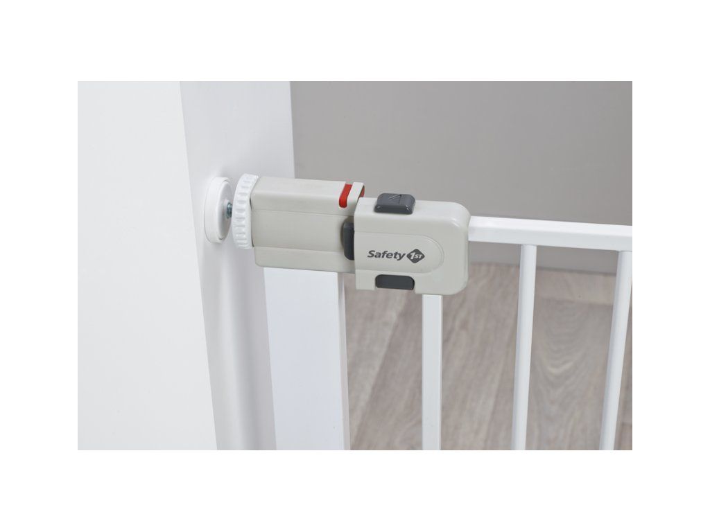 Safety 1st Easy Close Metal je kovová zábrana, ktorú je možné otvárať oboma smermi. Dvojitý zaisťovací mechanizmus zvyšuje bezpečnosť. Vďaka vizuálnemu indikátoru Secure Tech® budete mať istotu, že je zábrana správne zatvorená. Jednoduchá inštalácia bez vŕtania. Zábrana je vhodná do dverí či priestoru medzi stenami s rozmermi 73 cm až 80 cm a možno ju rozšíriť pomocou samostatne dostupných predĺžení až na 136 cm.