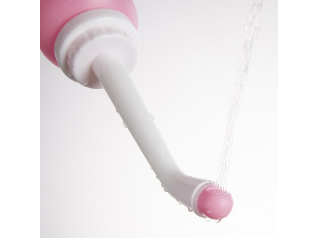 Intímna sprcha na umývanie intímnych partií uľahčuje starostlivosť o hrádzu po použití toalety. Intímna sprcha je skvelým pomocníkom pri udržiavaní každodennej hygieny nielen v tehotenstve a po pôrode, ale aj pri menštruácii alebo na cestách (v mnohých situáciách nahrádza tradičný bidet). Pravidelné používanie sprchy znižuje riziko možných infekcií alebo ďalšieho podráždenia intímnych partií.Intímna sprcha je navrhnutá tak, aby pravidelná intímna hygiena bola rýchla a jednoduchá, nech ste kdekoľvek: v nemocnici, doma alebo na cestách. Dlhý nástavec sprchy 17 cm a dve koncovky s rôznymi uhlami trysiek umožňujú lepšie prispôsobenie prúdu vody. Po obracaní fľaše smerom dole a jej stlačení vypustí sprcha prúd vody pod očakávaným uhlom, a tým sa ľahšie dostanete na ťažko dostupné intímne miesta. Uľahčuje očistenie ťažko dostupných partií bez toho, aby ste sa museli ohýbať. Zvlášť počas tehotenstva je spŕška veľmi užitočná, pretože brucho tehotnej ženy môže sťažiť pravidelné čistenie intímnych partií.