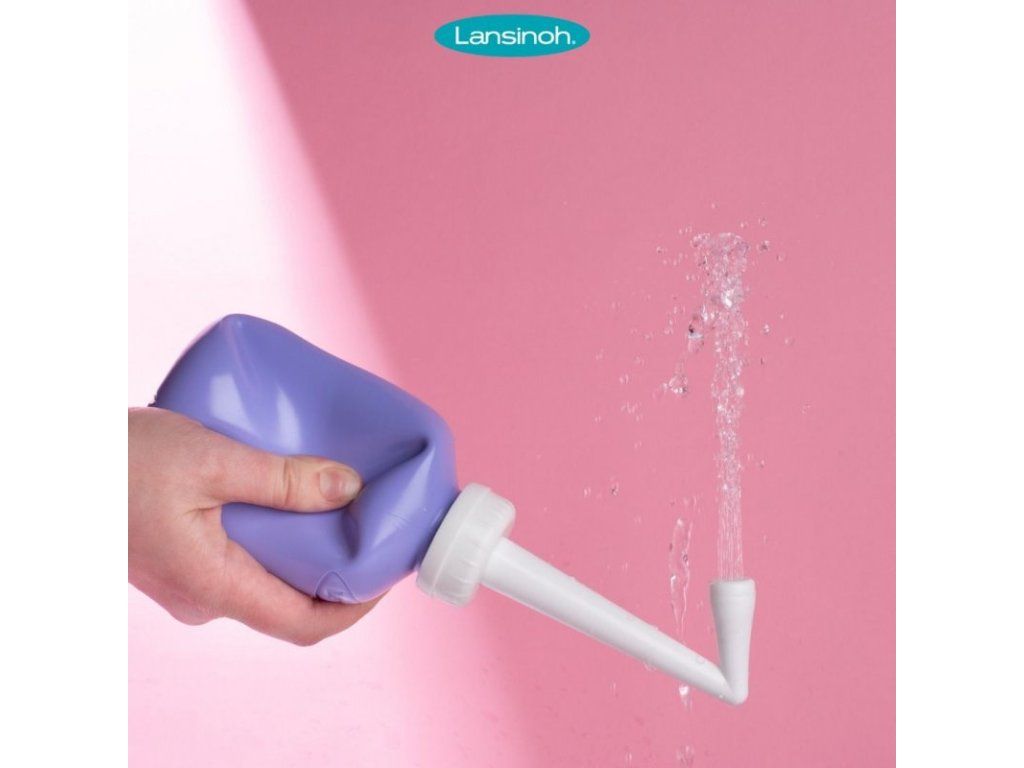 - plastová fľaštička na čistenie intímnych partií jemným prúdom vody po pôrode (namiesto toaletným papierom)