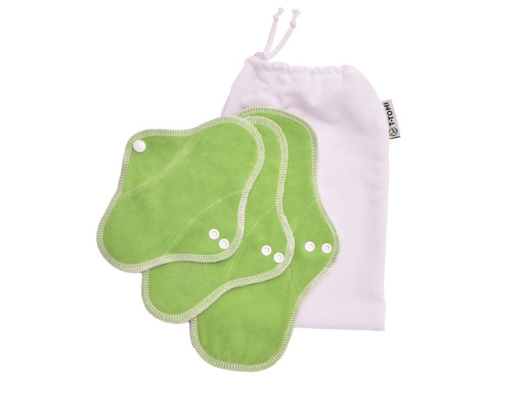 T-TOMI testovacia sada látkových vložiek je určená pre tých, ktorí by radi vyskúšali ekologickú variantu menštruačných vložiek. Sada obsahuje 1x látkovú vložku INTIM (spodná strana 100% bavlna, vnútorná strana dojčenský plyš), 1x látkovú vložku DENNÚ (spodná strana zo 100% polyestru s PUL záterom, stred – vysokogramážne froté, vnútorná strana dojčenský plyš) a 1x látkovú vložku NOČNÚ XL (spodná strana zo 100% polyestru s PUL záterom, spevnený stred – dve vrstvy vysokogramážneho froté a vrchná strana dojčenský plyš). Tieto vložky sú ZERO WASTE, a tak nevytvárajú žiadny zbytočný odpad a sú tak šetrné k životnému prostrediu i vašej peňaženke. Testovacia sada tiež obsahuje praktické vrecko na pranie.sada 3 ks látkových vložiek