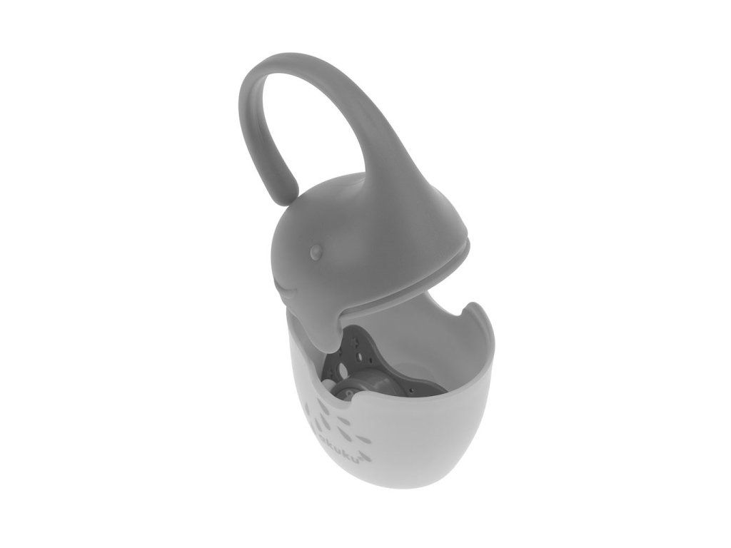 Praktický držiak na cumlík je veľmi užitočný pri cestovaní alebo prechádzkach. Chráni cumlík pred znečistením a poškodením. Veľmi ľahko sa používa a jednoducho sa pripevňuje na kočíky, autosedačky, tašky alebo zábrany postieľok. Pojme až 2 cumlíky. Neutrálne a príjemné farby sa hodia ku každému kočíku a taške. Nádoba má tvar slona.