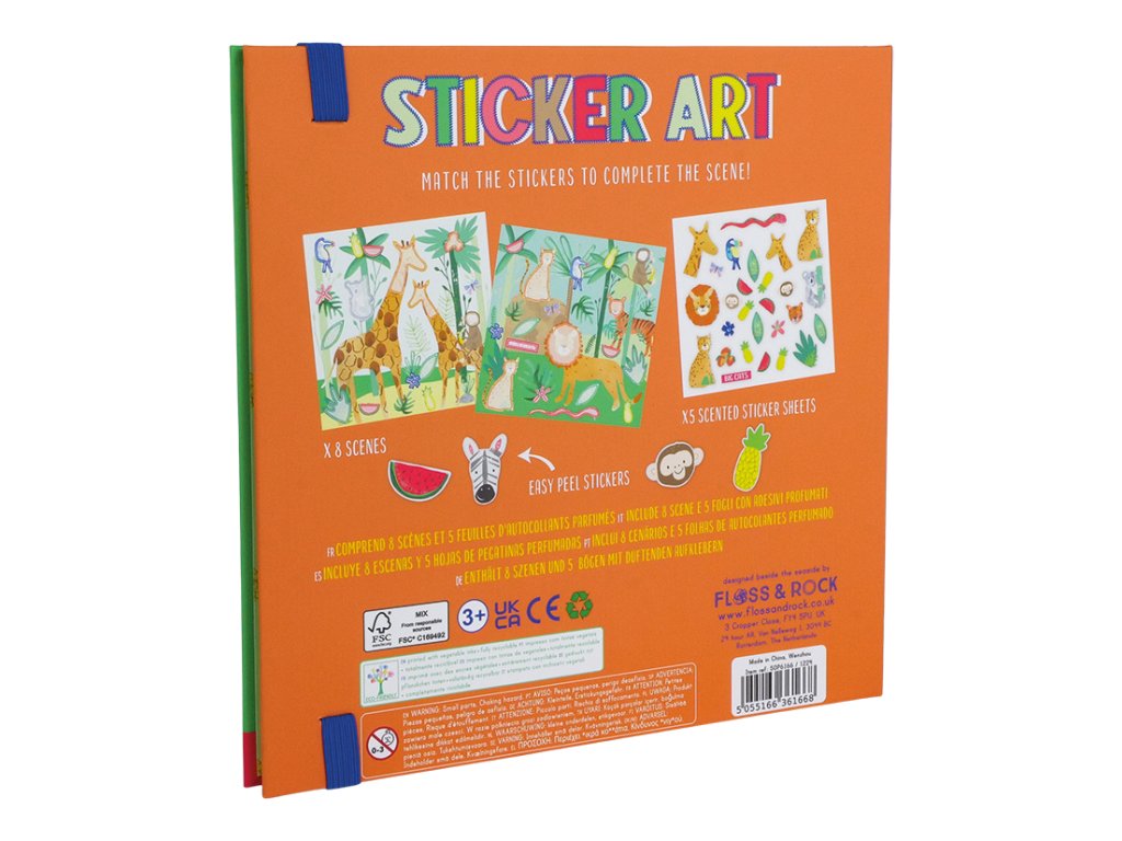 Floss&Rock knižka s nálepkami patrí medzi obĺúbené. Každá knižka má 8 scénok a 5 listov voňavých nálepiek, ktoré môžete nalepiť, odlepiť a používať znova a znova.Knižka má pevný obal a ľahko ju uzavriete, aby sa nič nestratilo.