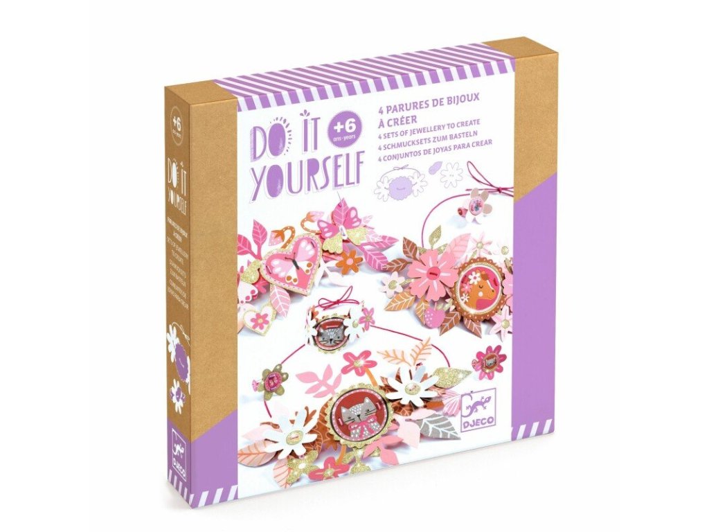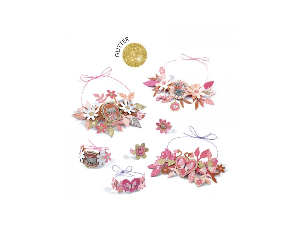 DIY Vyrob si sám Medailóny je kreatívna sada, v ktorej si deti vyrobia 4 sety papierovej bižutérie v jemnom, „retro“ štýle medailónov. Každý set obsahuje náhrdelník, náramok a prsteň – ozdobené elegantnými kvetmi, detailmi a portrétmi, ktoré dopĺňajú zlaté trblietky.