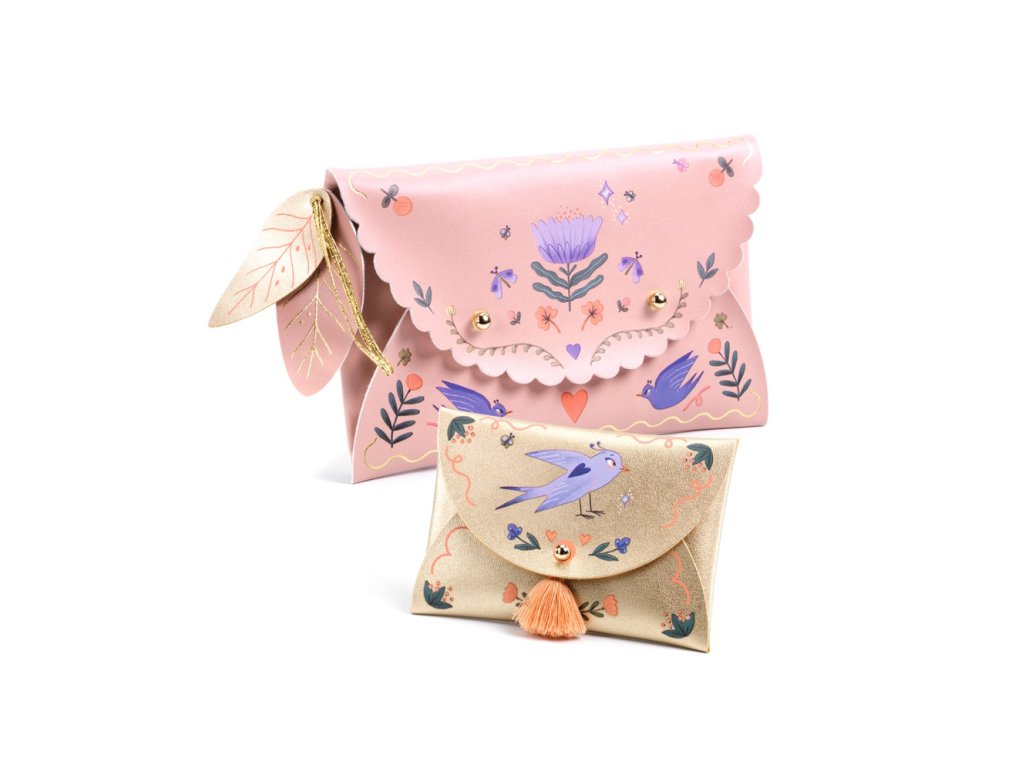 DIY Vyrob si sám Peňaženky Kreatívna sada, ktorá spája príjemné s užitočnýmS touto kreatívnou sadou si deti môžu vytvoriť dva módne doplnky z umelej kože – praktickú taštičku na drobnosti a štýlovú peňaženku. Pred samotným skladaním si dieťa vyberie motívy z hárkov obtlačkov a prenesie ich na puzdro jednoduchou technikou šrafovania ceruzkou. Tento spôsob zdobenia je zábavný, bezpečný a nezanecháva žiadny neporiadok – netreba nič strihať ani lepiť.Po zdobení puzdier deti poskladajú taštičku a peňaženku pomocou skrutkovacích uzáverov a doplnia ich ostatnými dekoráciami z kolekcie – ozdobné doplnky, brmbolec alebo zlaté pútko dodajú výrobkom finálny elegantný vzhľad. Hotové puzdrá sú nielen krásne na pohľad, ale aj praktické – deti si do nich môžu odložiť drobnosti, mince, kľúče alebo malé poklady. Sada je vyrobená z kvalitného papiera a lepenky s ekologickým certifikátom FSC®, takže tvorenie je šetrné k prírode. Kolekcia DIY – Vytvor si sám kombinuje umelecké vyjadrenie s úžitkovou hodnotou, čo umožňuje deťom vytvoriť výrobky, ktoré môžu hrdo používať alebo vystaviť ako dekoráciu.Obsah sady:2 puzdrá z umelej kože (taštička 19 × 12,5 cm, peňaženka 10 × 7 cm)