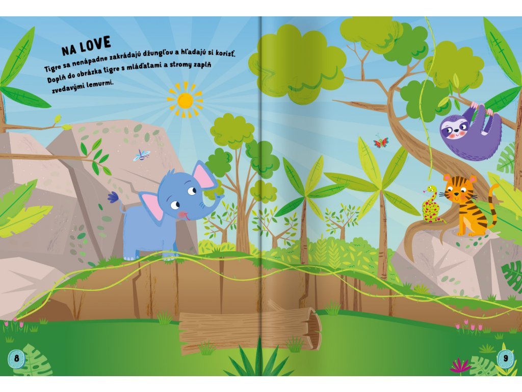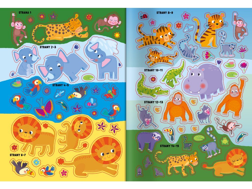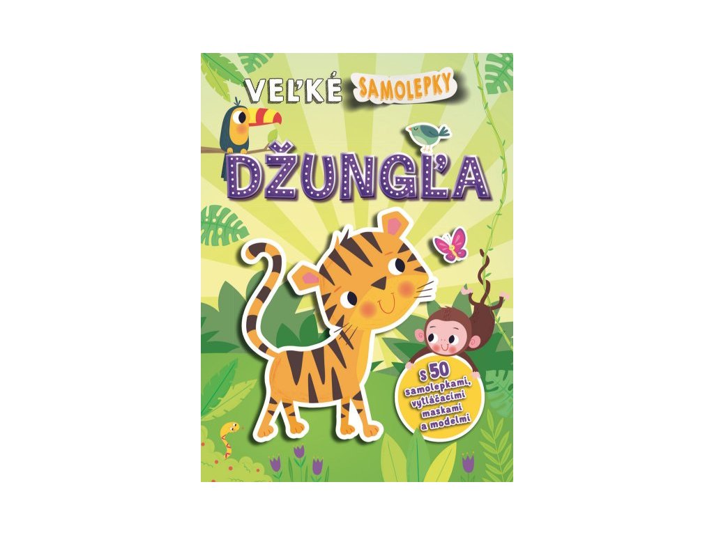 Džungľa - Veľké samolepky Vydaj sa do džungle za poriadnym dobrodružstvom s 50 samolepkami, vytláčacími maskami a modelmi! Do vetiev a krovia nalepuj samolepiek so zvieratami a s vytláčacími maskami a modelmi si uži plno zábavy! Uži si so samolepkami pri nalepovaní do rôznych scenérií veľa zábavy.Dotváranie stránok podnieti aj detskú predstavivosť a fantáziu. Zavítaj do divokej džungle, kde s tigrami, levmi, slonmi a opicami prežiješ poriadne dobrodružstvo. Z pevných stránok si môžeš vytlačiť úžasné masky a zvieracie modely! Nalepovaním väčších i drobnejších samolepiek si deti precvičia jemnú motoriku a koordináciu oka i ruky.Dodatočné parametre