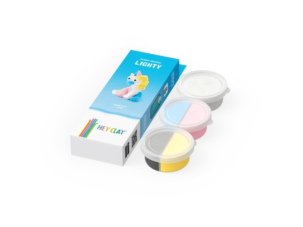 Hey Clay Jednorožec Lighty Vymodelujte si originálnu postavičku jednorožca Plastelína v pestrých farbách Hey Clay poteší každé dieťa, ktoré miluje svet kreatívneho tvorenia - podporuje jemnú motoriku, predstavivosť a umožní nekonečné formovanie. Po vymodelovaní stačí nechať postavičky zatvrdnúť na vzduchu približne 24 hodín, čím sa premenia na pevné figúrky a sú pripravené na ďalšie dobrodružstvá a hry.Tvoreniu sa žiadne medze nekladú Farebný rozmer zábavy - obsahuje 3 nádoby s mäkkou, jemnou a vońavou plastelínouBezpečné zloženie - netoxická plastelína vhodná aj pre najmenšíchPodporuje rozvoj zručností - modelovanie rozvíja prsty a koordináciuVšestranné využitie - na doma, do školy, na tvorivé dielnePrístupový kód do aplikácie - detičky sa môžu inšpirovať novými nápadmi Ideálny darček - pre predškolákov, školákov alebo kreatívne rodinné chvíleDodatočné parametre