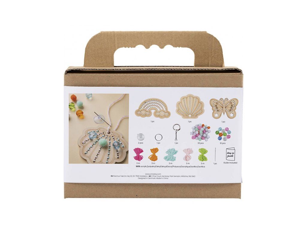 Užite si radosť z tvorenia s touto originálnou sadou na výrobu vyšívaných drevených ozdôb. Sada vám umožní tvoriť spoločne s dieťaťom – vyšívať, zdobiť korálkami a brmbolcami a vytvoriť roztomilé dekorácie aj doplnok na tašku. Deti si vyrobia jednu kľúčenku a dve závesné ozdoby do okna, ktoré si môžu vytvoriť v obľúbených farbách. Ideálna aktivita na daždivé popoludnie, pokojný čas doma alebo rodinné tvorenie.