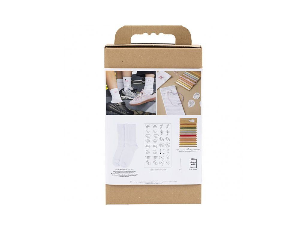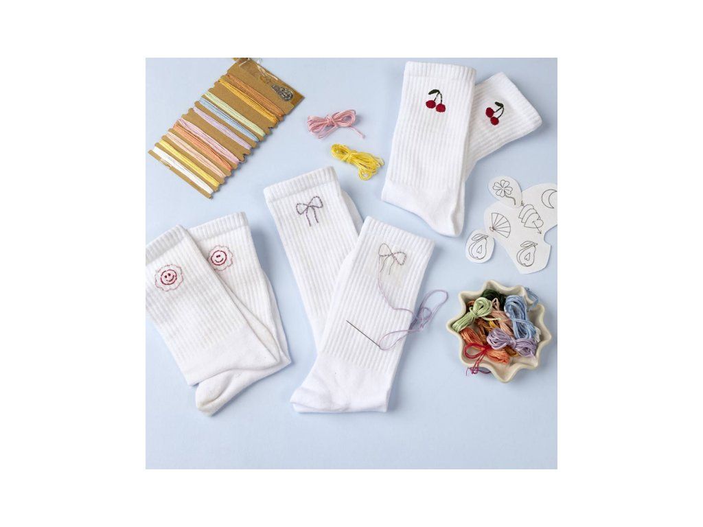 Originálna kreatívna sada na vyšívanie ponožiek. Táto sada vám umožní vytvoriť si vlastné ponožky s vyšitými detailmi, ktoré dodajú každému outfitu osobitosť a štýl. V balení nájdete ponožky, vyšívaciu priadzu i rozpustné vyšívacie samolepky, vďaka ktorým je celý proces jednoduchý aj pre začiatočníkov. Samolepky použijete ako šablóny, motívy vyšijete a po dokončení sa šablóny vo vode rozpustia. Výsledkom sú originálne ponožky, ktoré sa len tak neopozerajú.