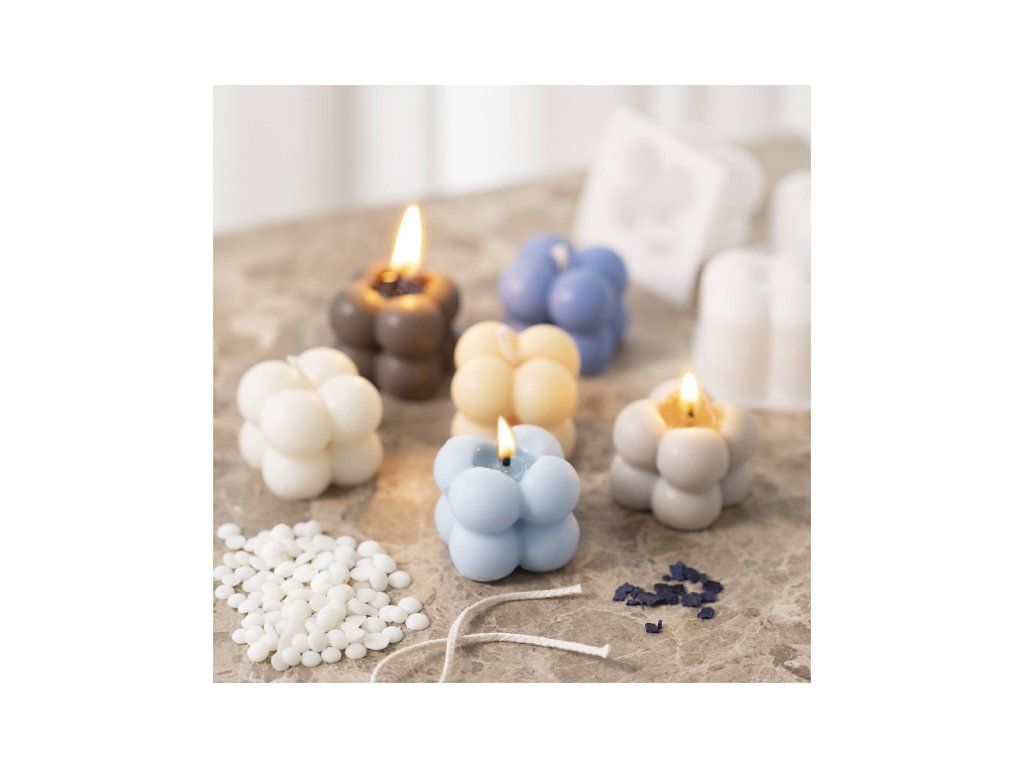 Vytvorte si vlastné štýlové bublinkové sviečky, ktoré ozdobia každý interiér alebo potešia ako originálny darček. Táto sada obsahuje všetko potrebné na odliatie šiestich dizajnových sviečok zo 100% sójového vosku – prírodné, vegánske a ekologické alternatívy klasických sviečok.