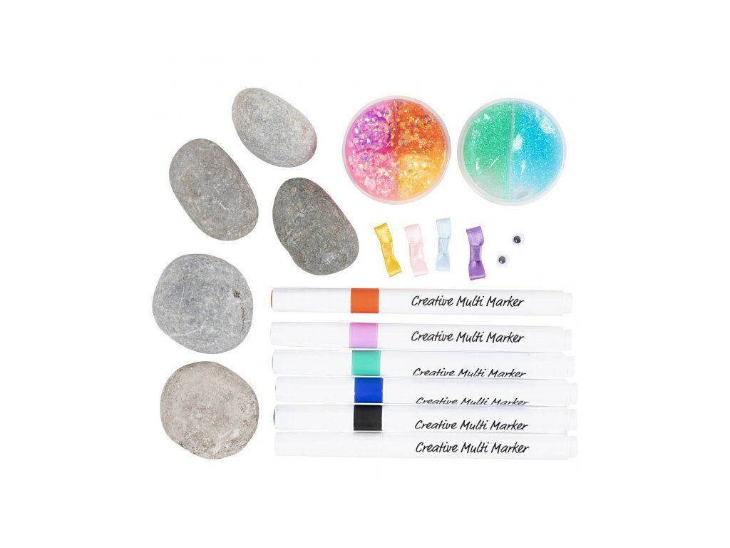 Zábavná sada pre deti, ktoré rady tvoria a majú rady srandu! Vďaka farebným fixkám, trblietavej hmote a smiešnym doplnkom si môžu vytvoriť vlastnú armádu roztomilých aj šialených kamenných príšeriek. Ideálna aktivita pre deti od 6 rokov.