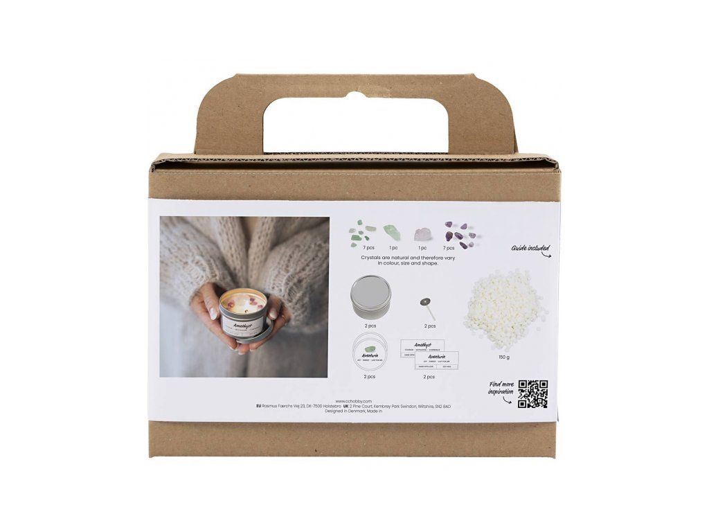 Vneste do svojho domova pokoj, energiu a štýl s ručne odlievanými sviečkami s prírodnými kryštálmi. Táto kreatívna súprava vám umožní vytvoriť dve luxusné sviečky zo 100% sójového vosku, ktoré kombinujú krásu, symboliku a wellness atmosféru.