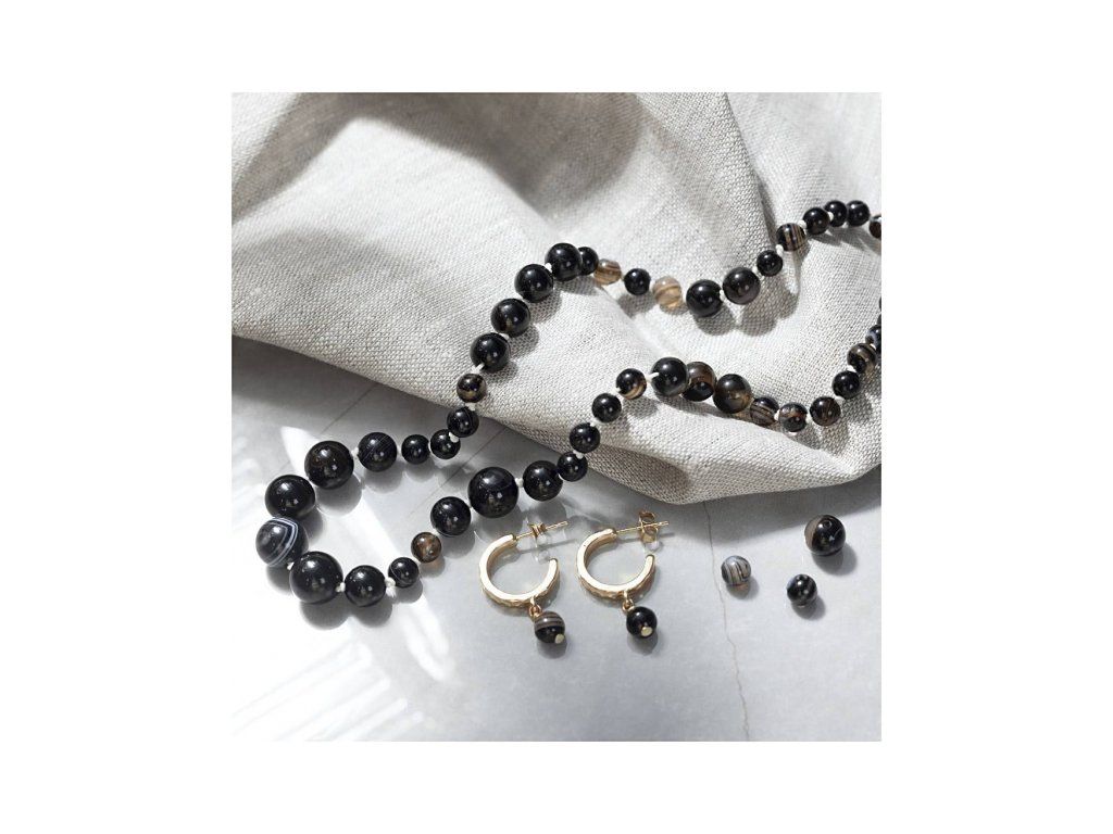 • Každá korálka z achátu je jedinečná – s čiernym základom a jemnými bielymi pruhmi