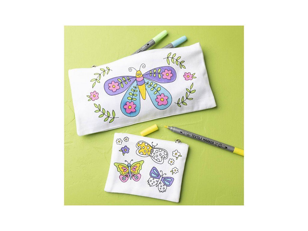 Kreatívna sada Maľovanie na textil peračník a peňaženka Motýľ