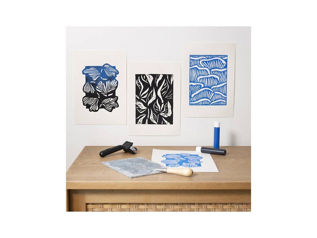 Objavte kúzlo ručnej tlače a vytvorte si vlastné umelecké diela metódou linorytu! Táto kreatívna sada vznikla v spolupráci s dizajnérkou Kristou Tolstrup a obsahuje všetko potrebné na výrobu dvoch výrazných grafických tlačí v modročiernych odtieňoch.