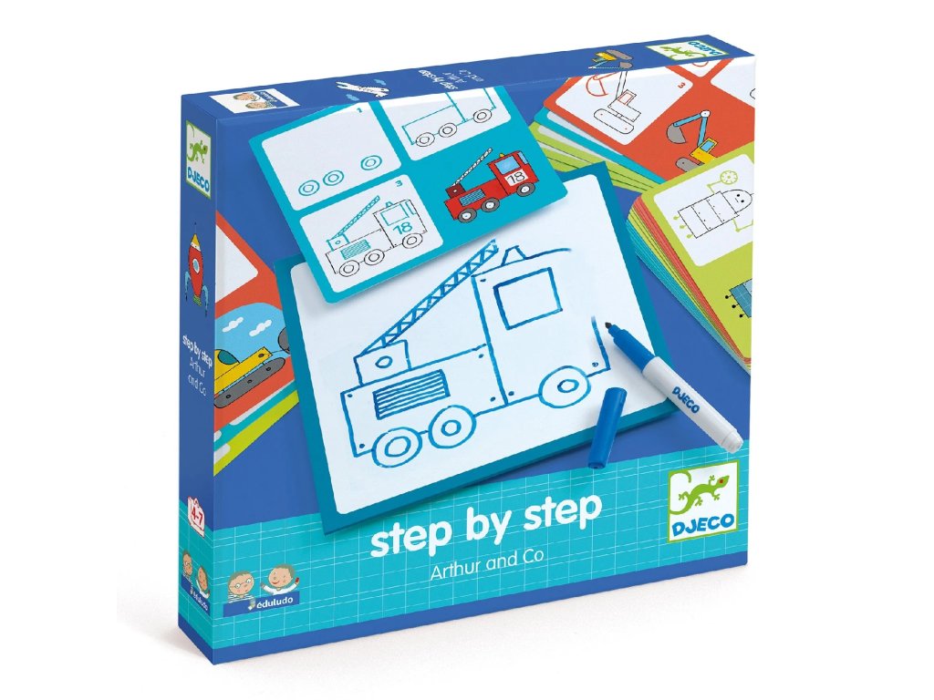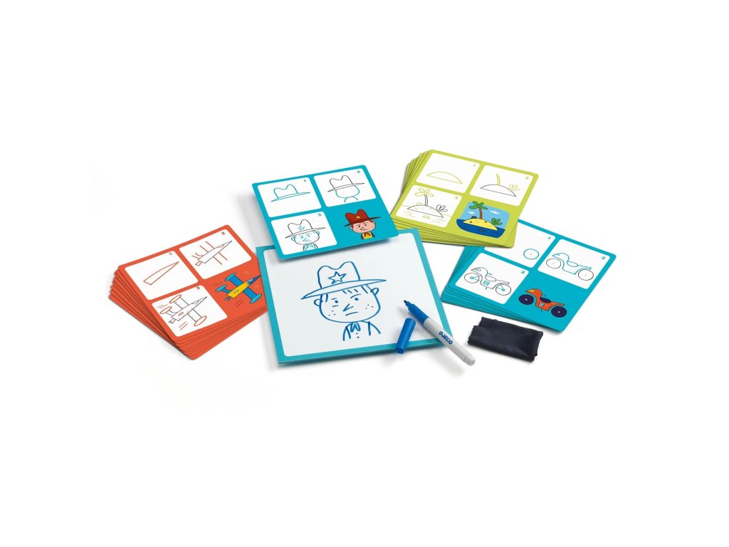 Kreslenie krok za krokom AutáUčte sa kresliť autá a techniku hravou formouKrok za krokom – Autá je zábavná edukačná sada z kolekcie Eduludo, ktorá deti učí kresliť autá a ďalšie „chlapčenské“ motívy jednoduchým a zrozumiteľným spôsobom. Pomocou názorných predlôh sa dieťa učí kresliť krok po kroku, bez stresu a s radosťou z každého podareného obrázka. Kreslenie sa tak prirodzene mení na hru, ktorá rozvíja trpezlivosť, sústredenie aj sebadôveru. Dieťa kreslí zotierateľnou fixkou na tabuľku podľa predlohových kariet. Hotový obrázok môže jednoducho zotrieť a skúšať znova, čo podporuje učenie bez obáv z chýb a motivuje k opakovaniu.