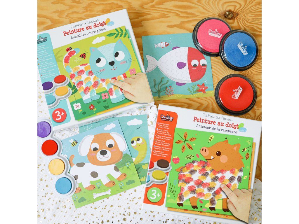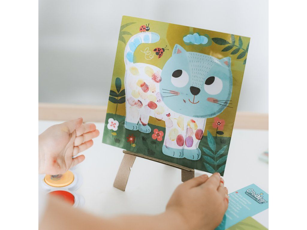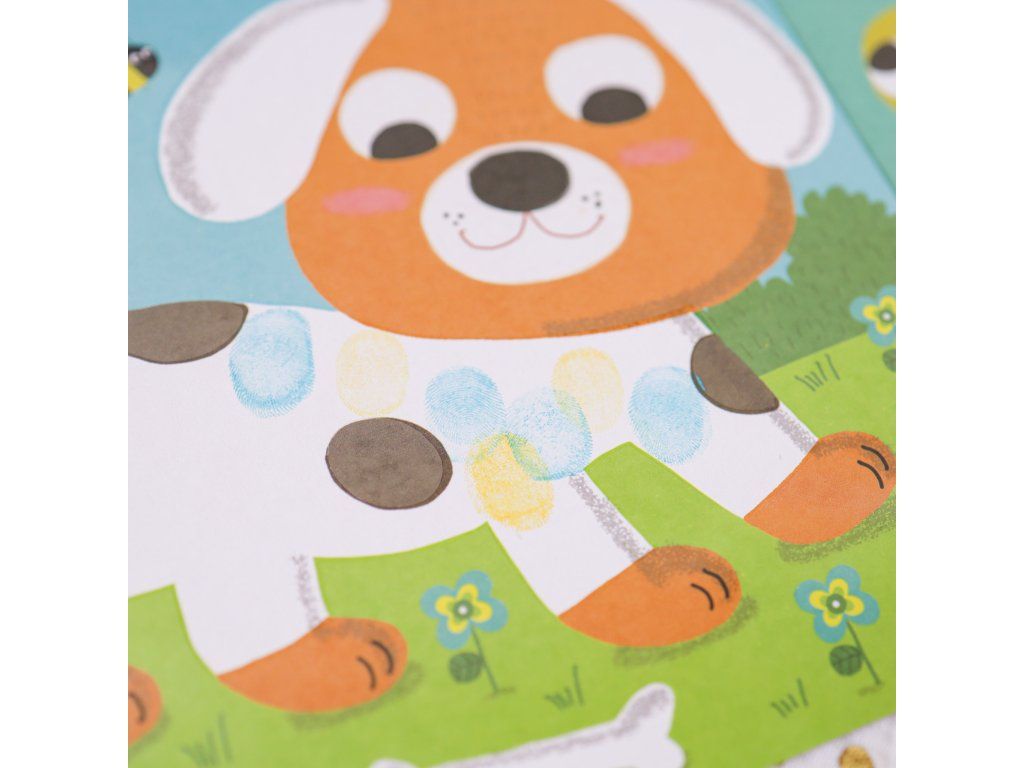Maľovanie prstovými farbami Domáce zvieratká je tvorivá sada pre deti od 3 rokov, ktorá funguje úplne jednoducho: namiesto štetcov používajú deti odtlačky prstov.