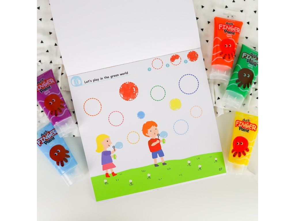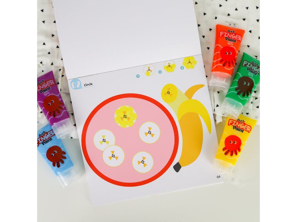 Maľovanie prstovými farbami Level 2 Umelec 30 listov Domaľuj si krásne obrázky svojimi prstami! Blok Maľovanie prstovými farbami od Tookyland obsahuje 30 listov s predlohami s najrôznejšími motívmi. Deti si ich môžu dotvoriť úplne podľa seba pomocou prstových farieb. Úroveň 2 poskytuje kreatívnu zábavu nadšeným umelcom. Deti sa už môžu poriadne kreatívne vyšantiť a popustiť uzdu svojej fantázii. Blok obsahuje aj návod ako s prstovými farbami tvoriť.Predlohy je možné využiť aj na farby v tubeDeti tak môžu využiť predlohy aj v začiatkoch bodkovania – dot paintingu alebo klasického maľovania štetcom. Cvičia si pritom jemnú motoriku, grafomotoriku a zoznamujú sa s kúzelným svetom tvorenia. Nakoniec im zostanú krásne obrázky, ktoré sa dajú z bloku jednoducho vytrhnúť.Dodatočné parametre