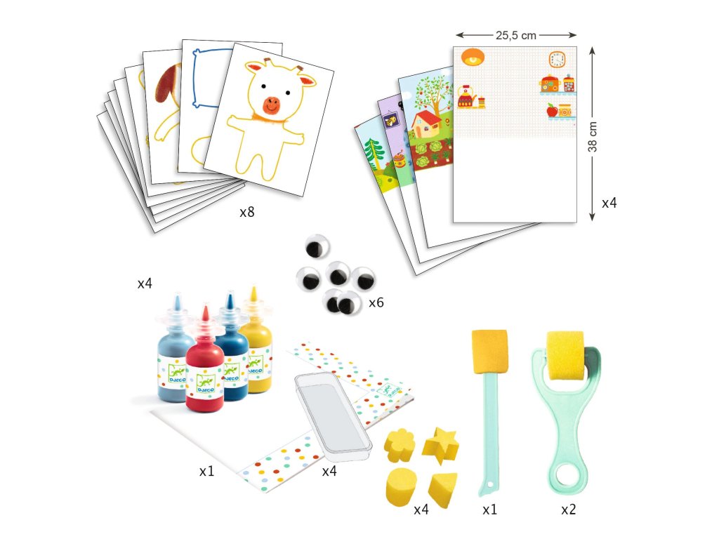 Maľovanie so špongiami Dobrodružstvá s plyšovými hračkamiKreatívna sada pre deti – maľovanie pomocou špongieMaľovanie so špongiami – Dobrodružstvá s plyšovými hračkami je hravá výtvarná sada, ktorá deťom umožní maľovať farebné obrázky pomocou špongií. Maľovanie je jednoduché, čisté a veselá téma s plyšovými kamarátmi udrží pozornosť aj menších detí.Prečo si vybrať kreatívnu sadu od Djecovhodná pre deti od 3 rokovjednoduché maľovanie pomocou špongiíkrásna dobrodružná téma s plyšovými hračkamirozvíja kreativitu bez neporiadkuideálna aktivita na doma aj do škôlkyObsah baleniafarbyšpongie na maľovanieprehľadný obrazový návodDodatočné parametre
