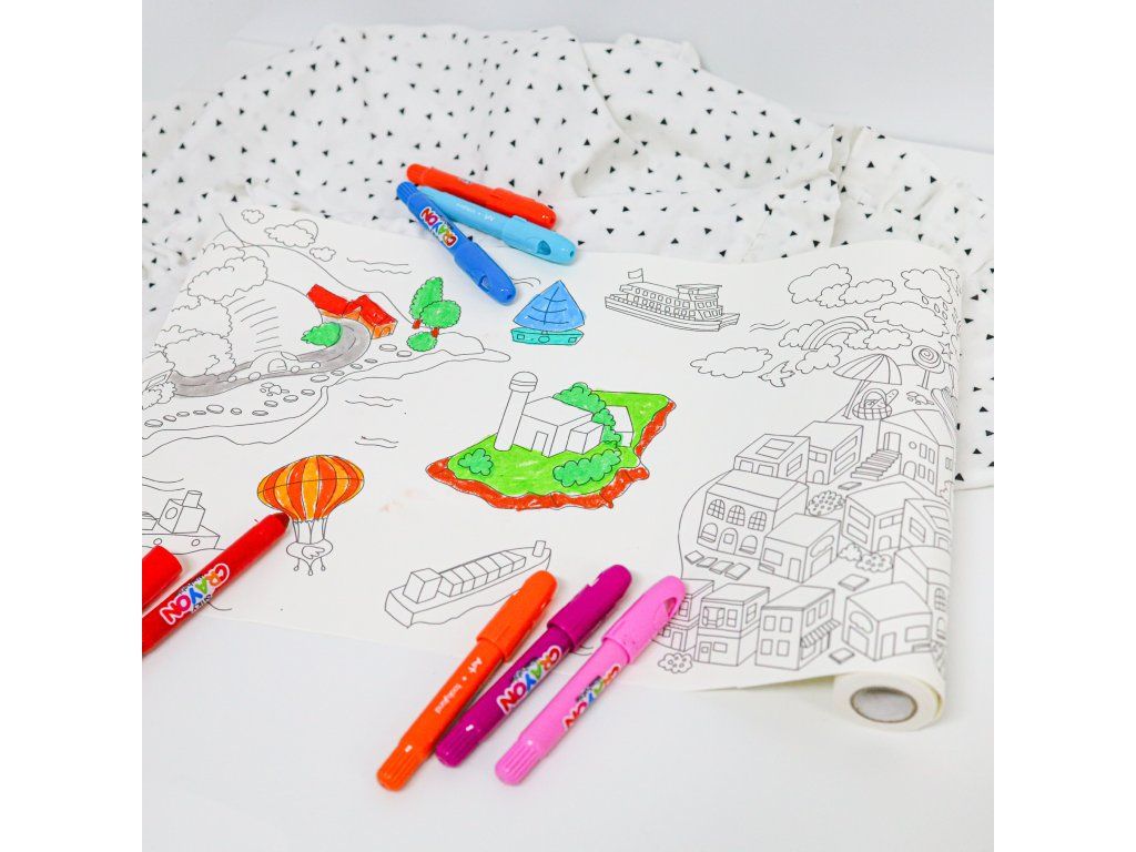 Maxi maľovanka v rolke 6 m Mestá sveta Vymaľuj si celý svet, doslova! Veľkoformátová omaľovánka v rolke od Tookyland dlhá takmer 6 m a vysoká 28 cm deti prevedie po svetových metropolách. Malí umelci si vymaľujú rôzne svetové monumenty, zabavia sa a niečo sa aj naučia. Veľkoformátová omaľovánka v rolke prináša hodiny zmysluplnej a kreatívnej zábavy. Skvelý podklad na jemné voskovky či zmývateľné fixky.Deti si môžu maľovanku nalepiť na stenu! Velká omaľovánka v rolke je vhodná pre deti, ktoré naozaj milujú vyfarbovanie. Jednotlivé časti plagátu ide od seba jednoducho odtrhnúť a deti si ich môžu nalepiť na stenu ako nálepku, prípadne si z nej môžu jednotlivé časti vystrihať a urobiť si z nich vlastnoručne vyfarbené nálepky na stenu.Dodatočné parametre