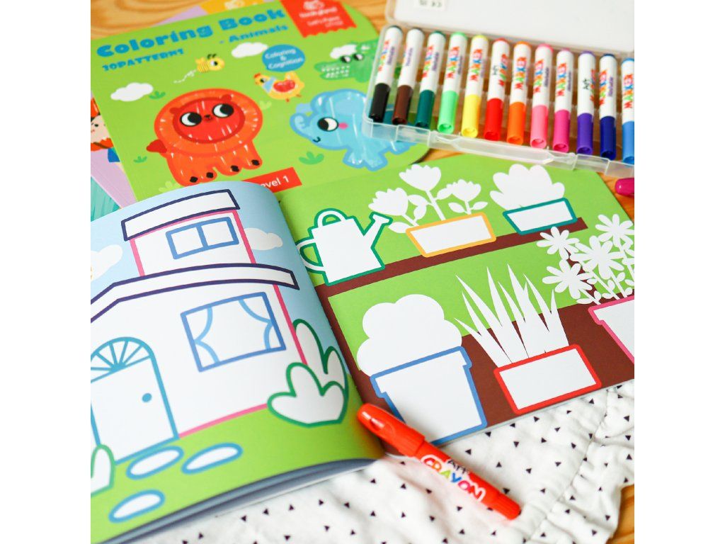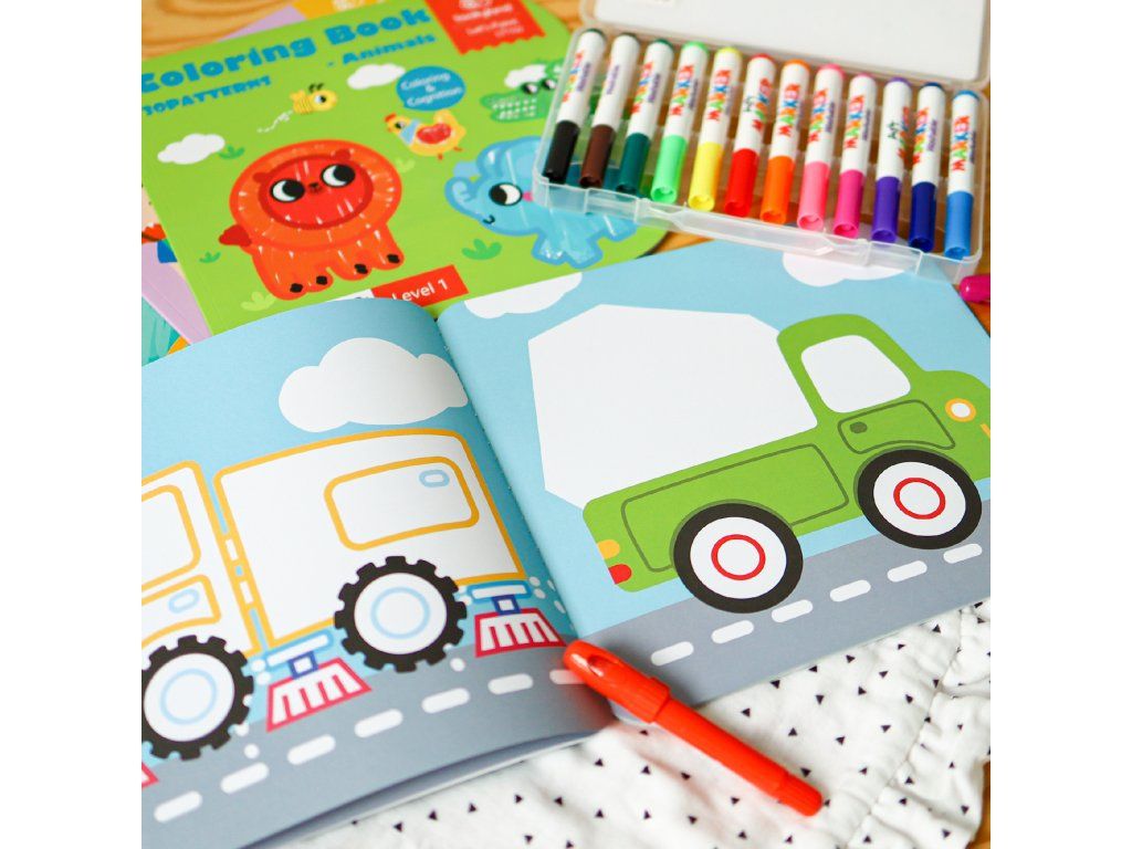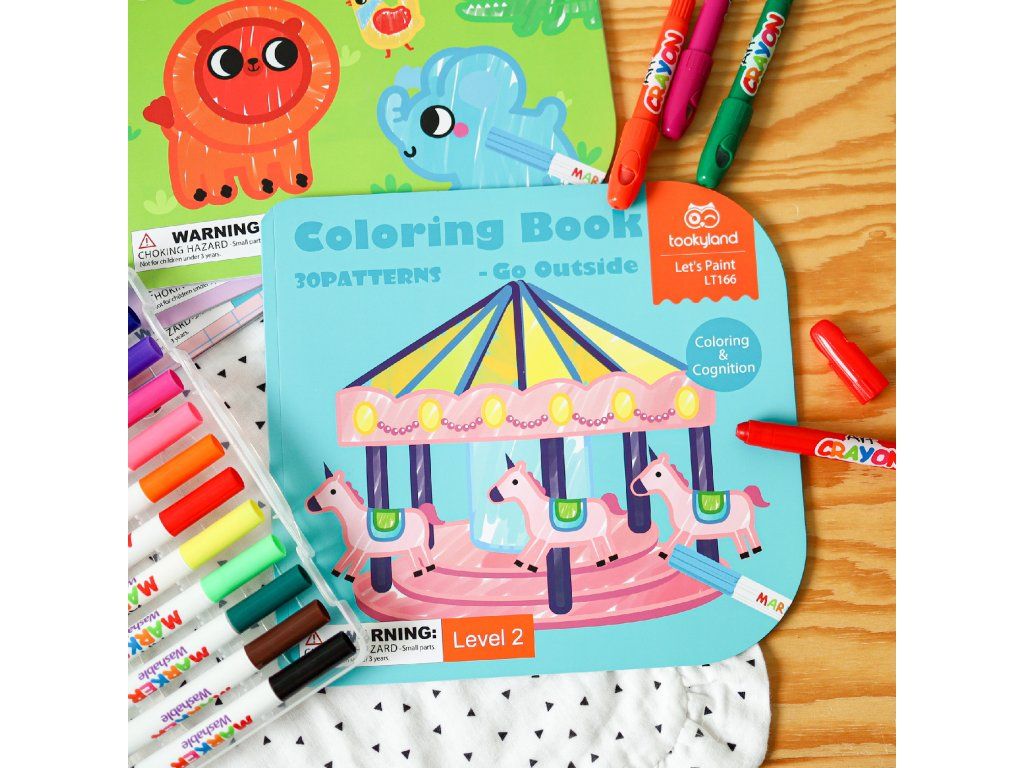 Moja prvá omaľovánka Poďme von Level 2 Omaľovánky plné zábavy Tento úžasný malý zošit Moje prvá omaľovánka Poďme von od Tookyland je skvelý pre najmenšie deti alebo ako omaľovánky na cesty. Deti v ňom nájdu 30 jednoduchých omaľovánok, dokresľovačiek a úloh. Zošit je tak skvelý už pre trošku skúsenejšie detičky. Je skvelá v kombinácii s jemnými voskovkami alebo zmývateľnými fixkami.Prostredníctvom obrázkov deti objavujú svetVďaka omaľovánka si deti zopakujú, čo všetko je možné vidieť vonku za dverami ich domova – zmrzlináreň, knihy v kníhkupectve, vlak a ďalšie. Pri práci so zošitom si deti rozvíjajú jemnú motoriku, slovnú zásobu a budú mať chuť objavovať svet.Dodatočné parametre