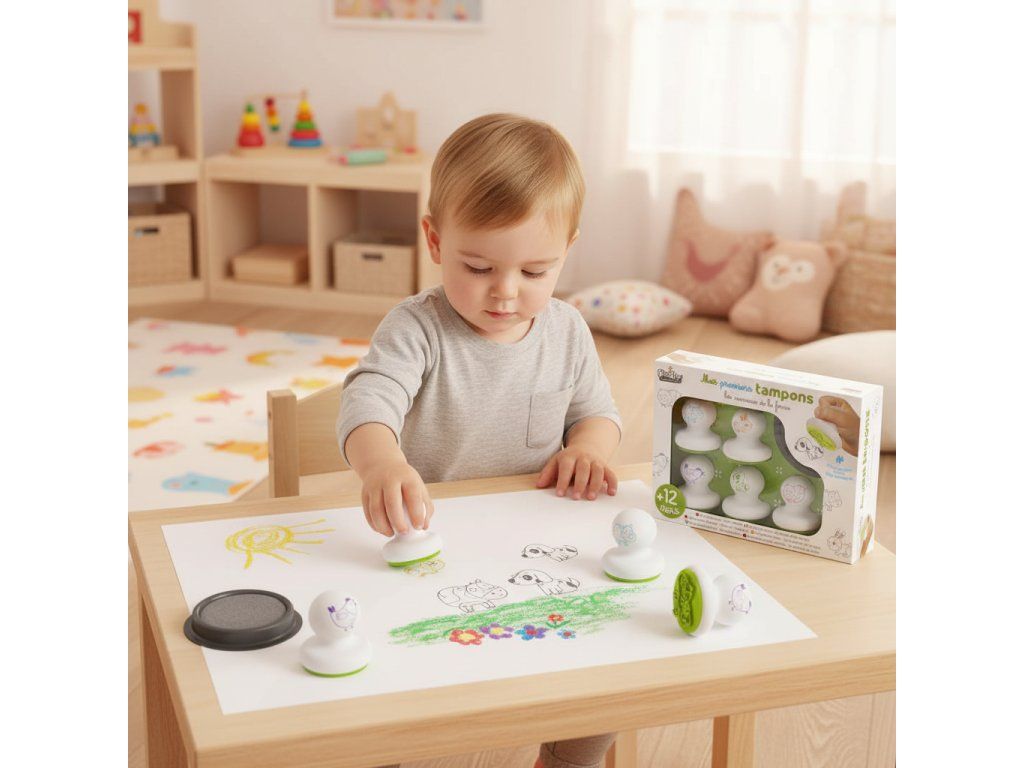 Moje prvé pečiatky – Domáce zvieratká sú veľké ergonomické pečiatky pre najmenších, s ktorými ide pečiatkovanie ľahko už od 12 mesiacov.