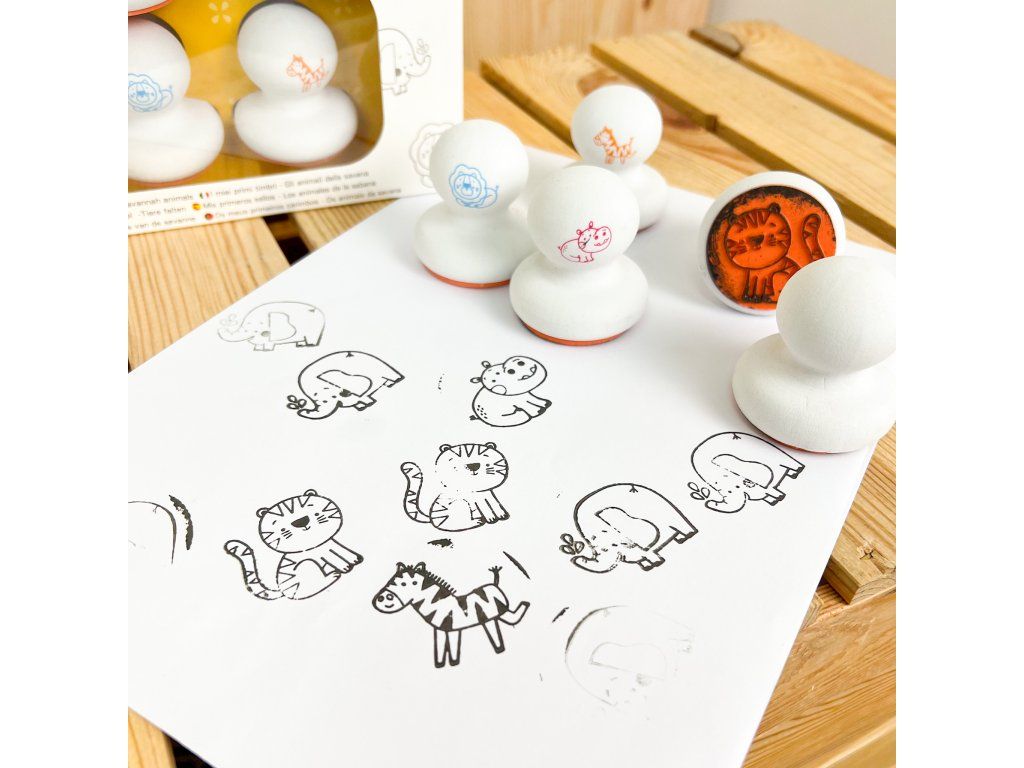 Moje prvé pečiatky – Zvieratká zo savany sú tvorivá sada pre najmenších, s ktorou ide pečiatkovanie ľahko už od 12 mesiacov.