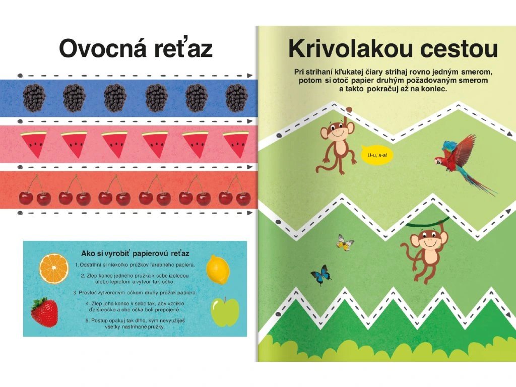 Moje prvé Strihanie Táto kniha s vytrhávacími stránkami je ideálnou pomôckou, ako sa naučiť strihať či si precvičiť strihanie. Na jednotlivých stránkach deti nájdu úlohy na strihanie a vystrihovanie, kde si postupne osvoja strihanie čiar, tvarov či najrôznejších obrazcov. Veselé a nápadité úlohy sú doplnené o krátke pokyny či rady.Dieťa sa naučí správne a bezpečne zaobchádzať s nožnicami a užije si zábavu pri strihaní. Rozvíjajte motorické schopnosti, koordináciu oka a ruky, základné zručnosti a predstavivosť s touto hravo ilustrovanou knihou.Dodatočné parametre