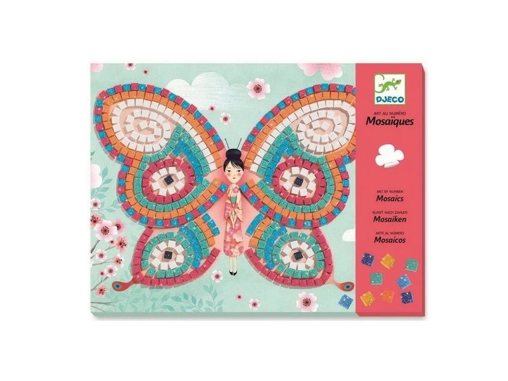 Mozaika Motýle je kreatívna sada, v ktorej deti dotvoria 2 pevné obrázky s motívom motýlích víl pomocou samolepiacich trblietavých penových štvorčekov. Stačí odlepiť dielik a nalepiť ho na správne miesto podľa predlohy – obrázok sa postupne rozžiari farbami a získa krásny mozaikový efekt.