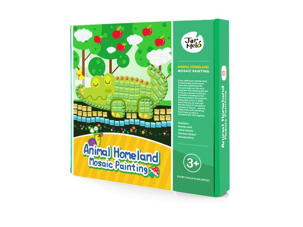 Mozaika Svet zvierat Vytvorte si vlastného zvieracieho hrdinu Táto variabilná mozaiková sada od Jarmelo umožňuje deťom rozvíjať jemnú motoriku a kreatívne myslenie bez neporiadku. Deti nalepia farebné penové štvorčeky a trblietavé kamienky na predtlačené zvieracie ilustrácie, čím vytvoria vizuálne atraktívne a hmatové výtvory. Čím je táto sada výnimočná? 8 kartičiek so zvieracími motívmi – každý obrázok iný, od krokodíla až po rybkuFarebné penové mozaikové kúsky + trblietavé perleťové kamienkyJednoduchý návod, ktorý krok za krokom ukazuje postup tvorbyBez lepidla, bez neporiadku – všetky dieliky držia samovoľne vďaka lepivému podkladuPodporuje jemnú motoriku, trpezlivosť aj kreativitu – ideálne ako darček na doma či do škôlkyBezpečné, netoxické materiály, vhodné pre deti od 3 rokovDodatočné parametre