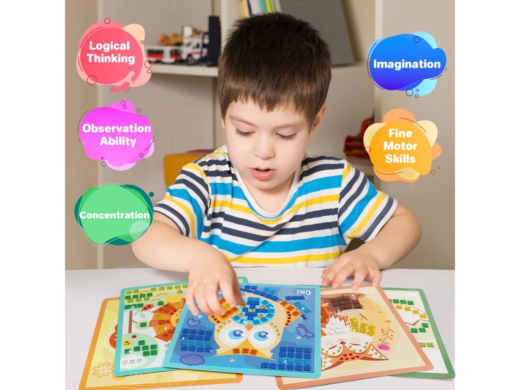 Mozaika Zvieratá Vytvorte si vlastného zvieracieho hrdinu Táto variabilná mozaiková sada od Jarmelo umožňuje deťom rozvíjať jemnú motoriku a kreatívne myslenie bez neporiadku. Deti nalepia farebné penové štvorčeky a trblietavé kamienky na predtlačené zvieracie ilustrácie, čím vytvoria vizuálne atraktívne a hmatové výtvory. Čím je táto sada výnimočná? 8 kartičiek so zvieracími motívmi – každý obrázok iný, od krokodíla až po rybkuFarebné penové mozaikové kúsky + trblietavé perleťové kamienkyJednoduchý návod, ktorý krok za krokom ukazuje postup tvorbyBez lepidla, bez neporiadku – všetky dieliky držia samovoľne vďaka lepivému podkladuPodporuje jemnú motoriku, trpezlivosť aj kreativitu – ideálne ako darček na doma či do škôlkyBezpečné, netoxické materiály, vhodné pre deti od 3 rokovDodatočné parametre
