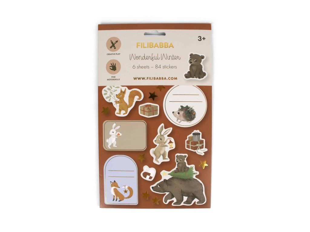 Vstúpte do kúzelnej zimnej krajiny a nechajte kreativitu zažiariť! S nálepkami od FILIBABBA si deti môžu vytvoriť vlastné očarujúce scenérie – ozdobiť vianočný stromček, umiestniť darčeky podňho a pozvať svojich obľúbených lesných kamarátov na sviatočnú oslavu.