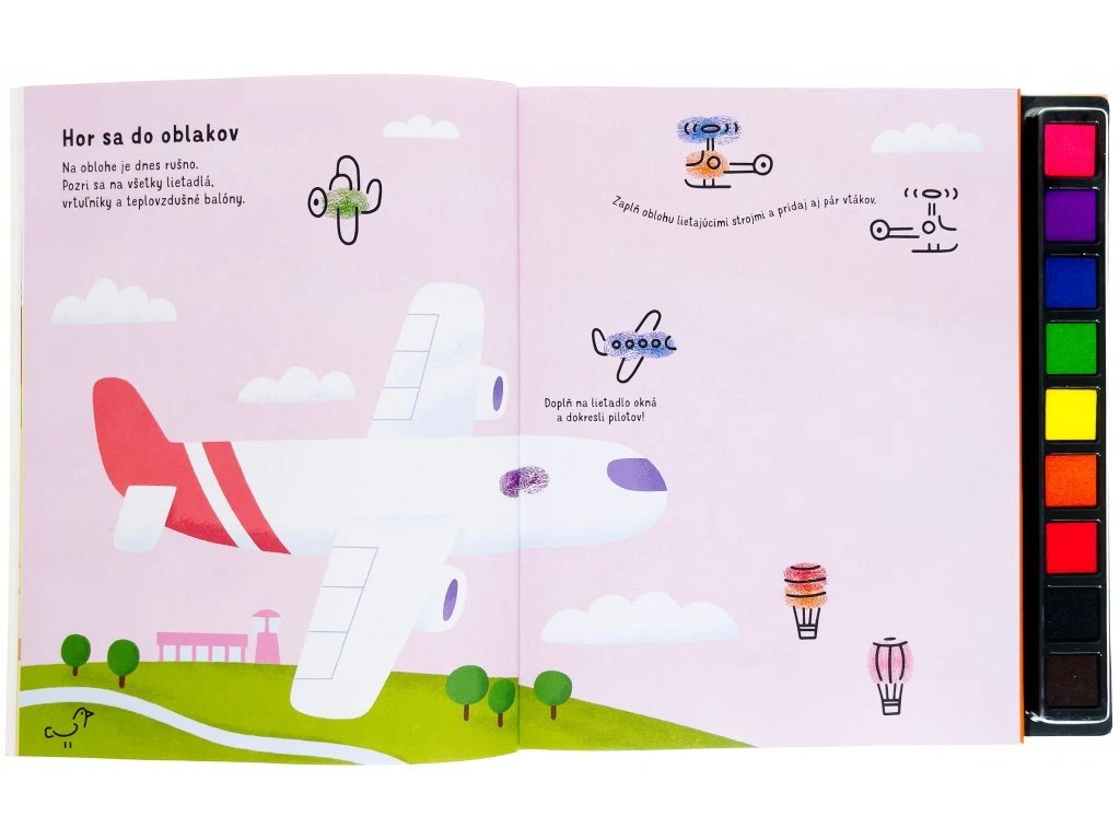 Odtlač prstíky - Všetko, čo jazdí Deti maľujú pomocou odtlačkov prstov. Odklop viečko a vytvor krásne obrázky pomocou farebných atramentových vankúšikov v tejto kreatívnej knihe plnej úloh.Kniha podporuje kreativitu a zručnosť. Táto kreatívna kniha obsahuje mnoho nápadov a návodov na vytvorenie zábavných obrázkov pomocou farebných odtlačkov prstíkov. Na každej stránke s tematikou dopravných prostriedkov či najrôznejších vozidiel sa môžeš umelecky vyjadriť a obrázky zaplniť aj podľa svojej vlastnej fantázie. Hotové odtlačky môžeš dokončiť pomocou fixky a pridať im drobné, nápadité detaily - vytváraj žeriavy, lietadlá, lode či psie záprahy. Rôzne prsty robia rôzne odtlačky, tak na nič nečakaj a pusť sa do tvorenia!Dodatočné parametre