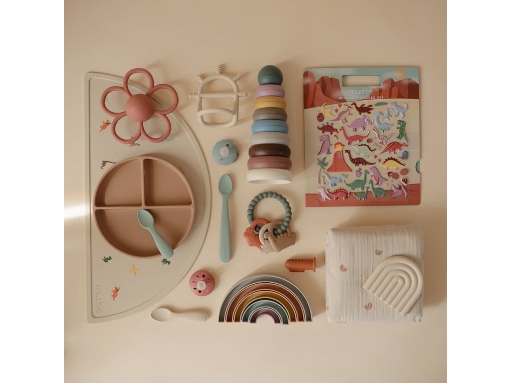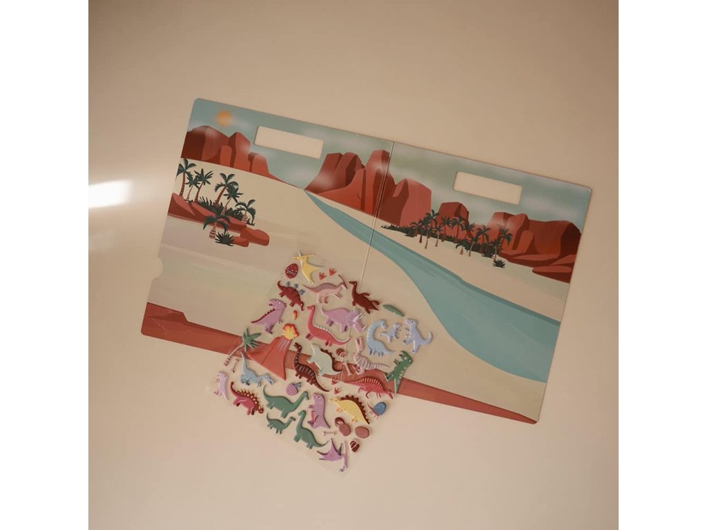 Opätovne použiteľné nafúknuté nálepky vr. knižka s nálepkami pre deti, ktoré milujú svet dinosaurov! Nálepky sa dajú použiť znova a znova a ich rôzne farby a tvary okamžite upútajú pozornosť tých najmenších. Nálepky podporia kreativitu detí, zatiaľ čo vo svojej knižke so samolepkami vytvoria jedinečné rozprávanie. Nálepky naučia deti aj o dinosauroch, vďaka čomu sú hravé a zároveň náučné. Okrem toho nálepky tiež poskytujú množstvo vývojových výhod; napríklad odlepenie nálepiek a ich umiestnenie na iný povrch si vyžaduje presnosť a kontrolu, ktorá postupne zlepšuje koordináciu ruka-oko. Mushie Reusable Sticker Set (Dino) – detaily Odporúčaný vek: 3+ roky Materiál: Kniha: Papier - Nálepka: PVCDodatočné parametre