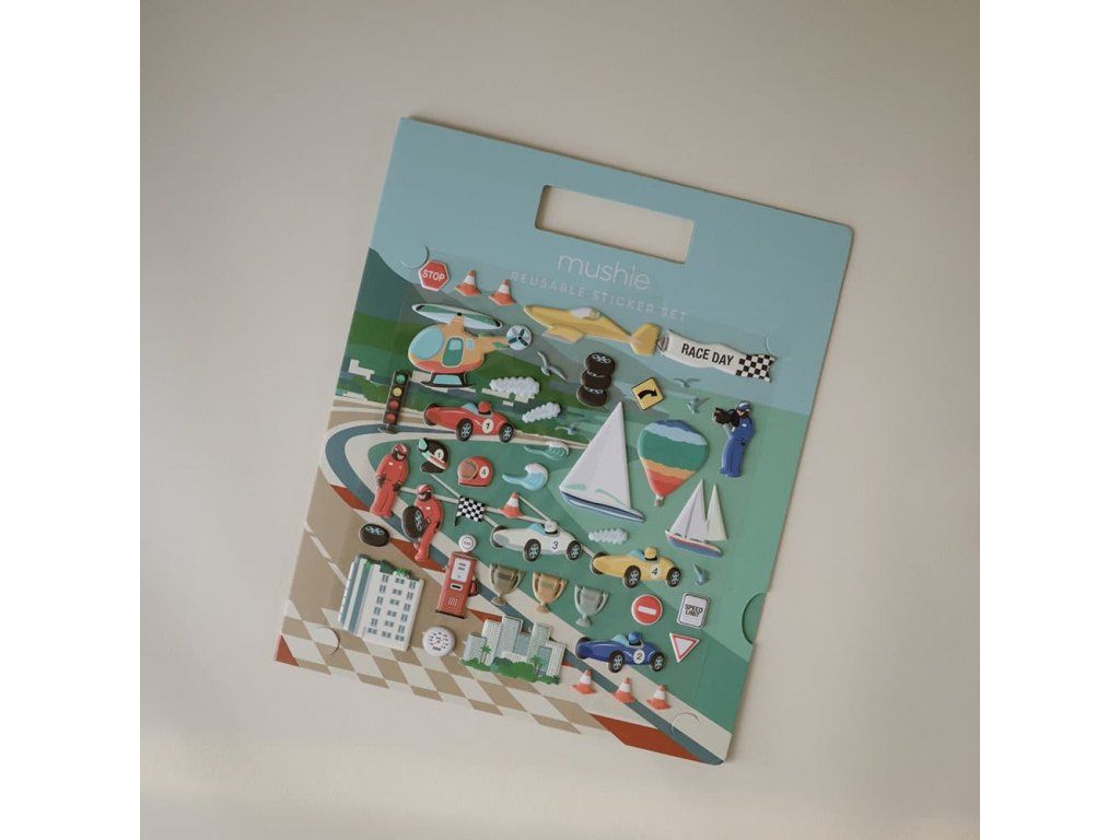 OPAKOVATEĽNE POUŽITEĽNÉ NÁLEPKY MUSHIE - RACE CARS